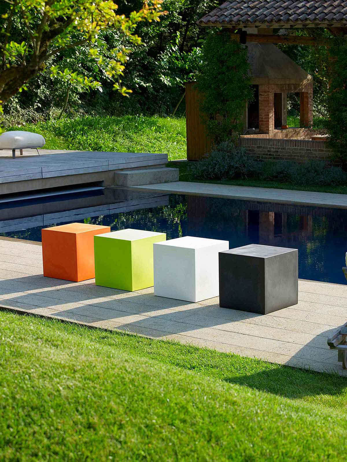 Kube 40 è il pouf da esterno compatto e coloratissimo, realizzato in polietilene di qualità con tecnica di stampaggio rotazionale. Ideale per esterni gioiosi e vivaci e praticissimo da sollevare e spostare per creare geometrie originali dal design minimal chic!