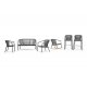 Una collezione SMART di nome e di fatto, formata da divano, dondolo, poltrona poltroncina e sgabello con sedute di tessuto tecnico in PVC VAR#TEX brevettato Varaschin, schienali in cordino sintetico intrecciato dello stesso materiale e struttura in alluminio verniciato a polveri. Molto robusti seppur leggeri, nonché facili da impilare e immagazzinare, i modelli della collezione si adattano particolarmente bene alle esigenze del mercato contract.