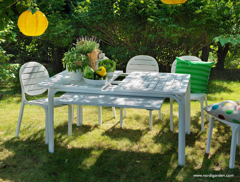 Tavolo Alloro 140 Extensible bianco Nardi Outdoor | Tavoli design, da giardino, esterno, outdoor, in polipropilene, alluminio, resina