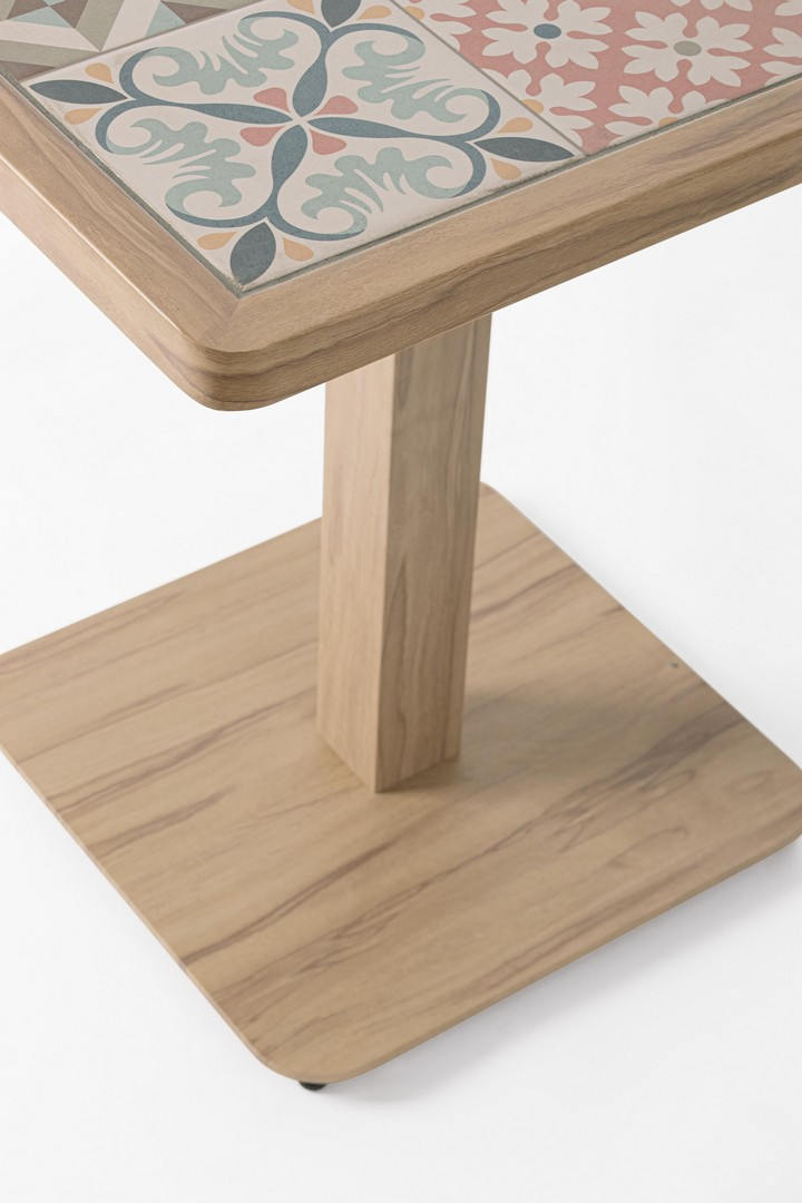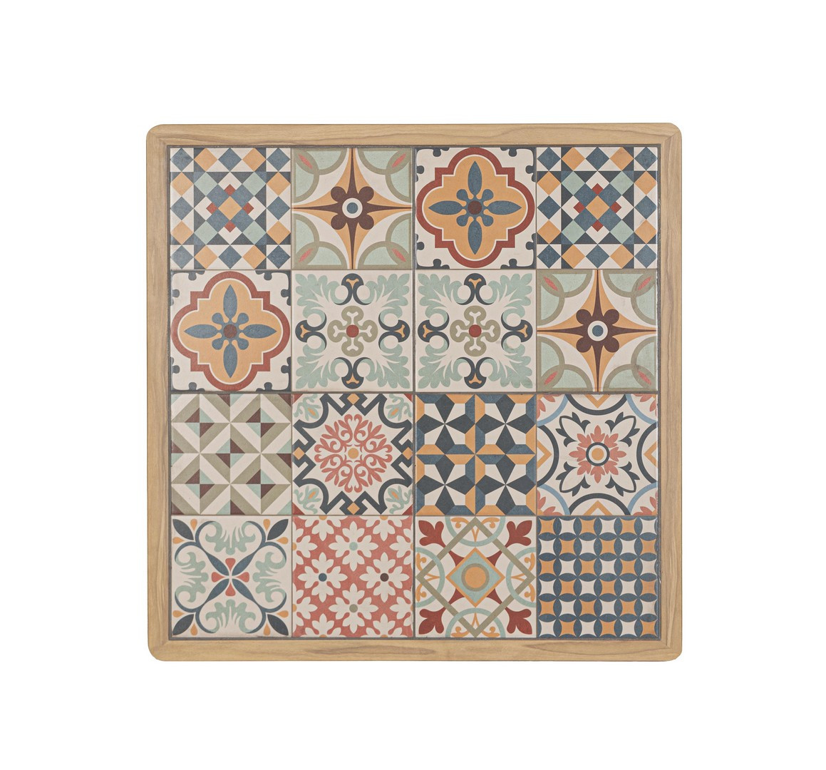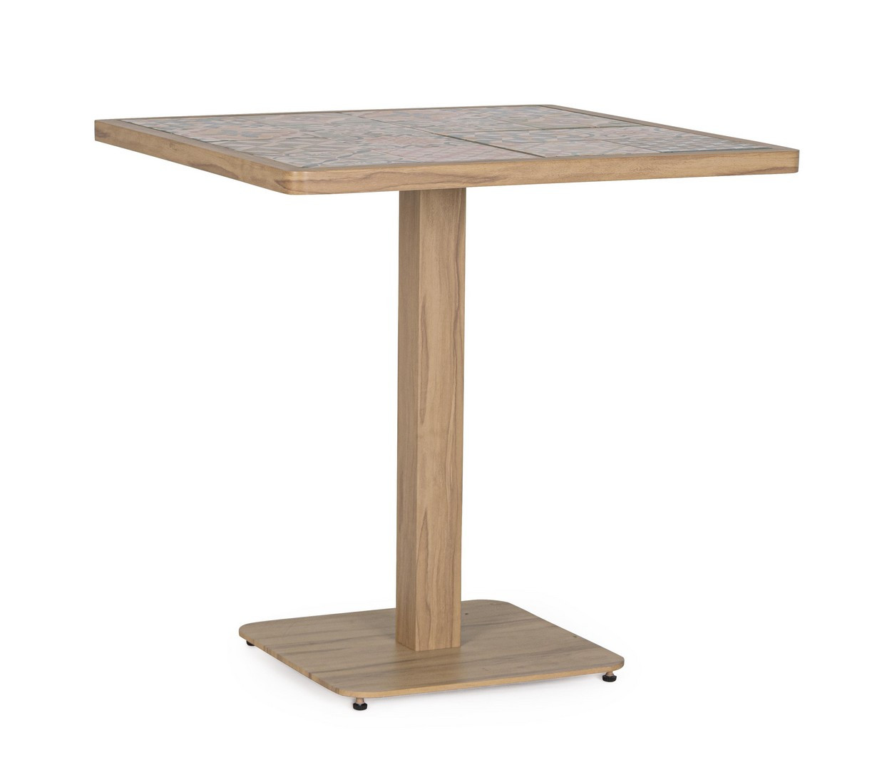 Tavolo Kalimera 73x73 Desert di Bizzotto è il tavolo da giardino di design con piano e gamba centrale in alluminio verniciato a polvere (poliestere). Piano con mattonelle in porcellana smaltata (provenienza spagna). Base in acciaio trattato per esterno (e-coating) e verniciato a polvere (poliestere). Piedini regolabili. Viteria in acciaio inossidabile. Da assemblare.