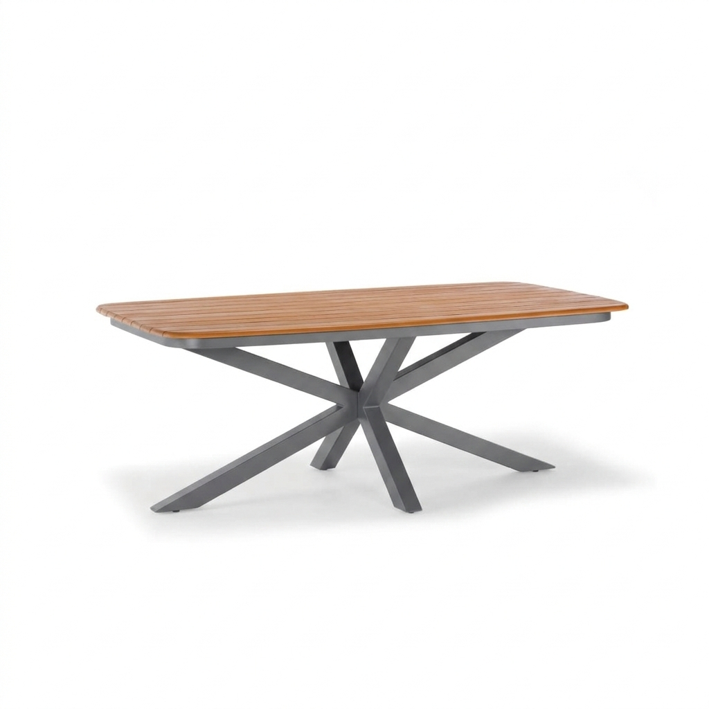Cross Table Grattoni | Tavolo design con struttura in alluminio e piano in doghe di teak