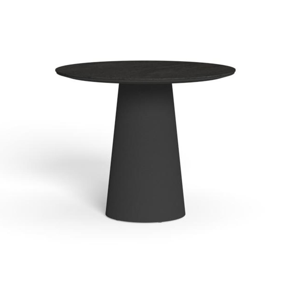 Dolcevita Alu Tavolo da pranzo Ø 90 di Talenti è il tavolo da giardino dal design moderno e deciso, il tavolo pranzo d90 è perfetto per un’ area pranzo all’aperto, offrendo momenti di convivialità. La base conica sostiene un ampio piano rotondo in gres, creando un elemento d’arredo che cattura l’attenzione senza perdere la semplicità delle forme.
