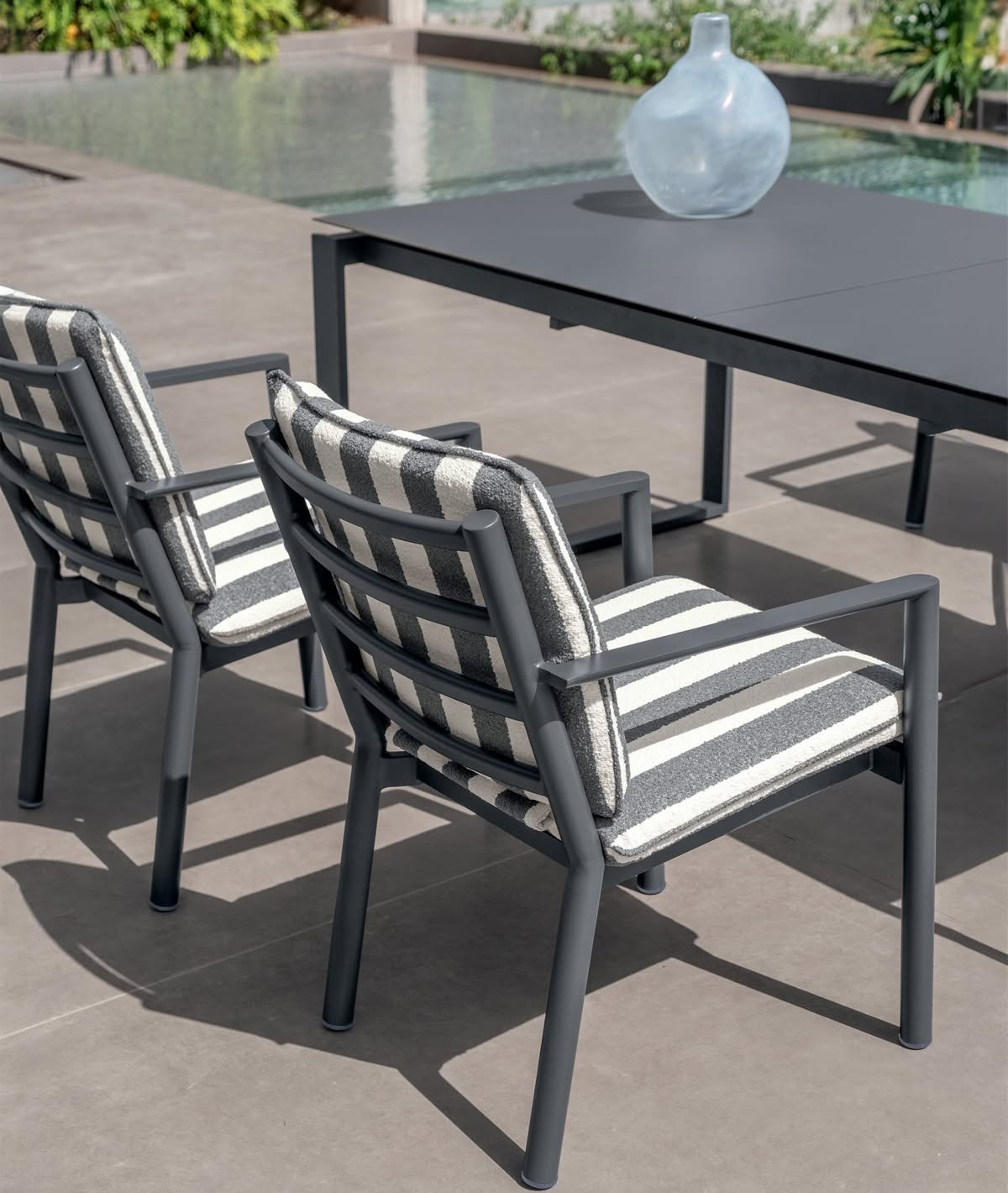 Finn Tavolo da pranzo allungabile 205-270 di Talenti è il tavolo da giardino che completa la collezione con un segno deciso e architettonico: base a slitta in alluminio, resistente alle intemperie e facile da mantenere. Disegnato per vivere all’esterno senza compromessi, Finn combina minimalismo e materia, diventando il centro funzionale e stilistico di ogni spazio outdoor.