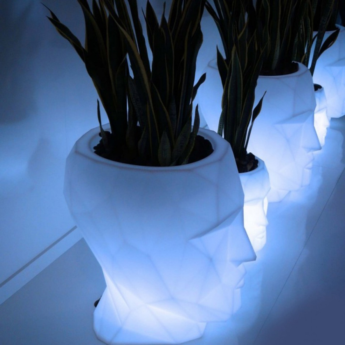 Adan sgabello tavolo 50x68x70 luminoso di Vondom è lo sgabello/tavolo da giardino realizzato in resina di polietilene mediante stampaggio rotazionale. Riciclabile al 100%. Articolo adatto per uso interno ed esterno e disponibile in diverse finiture. Teresa Sapey ci sorprende con le sue creazioni, questa volta attraverso la Collezione ADAN per Vondom, un oggetto dalla grande personalità e dalla forma sfaccettata, come quella di un diamante. Più che oggetti, sono pezzi di architettura polifunzionali, perché oltre ad essere usati come vasi nella versione predisposta, possono essere utilizzati come sedute e tavoli ausiliari. Sono oggetti lifestyle che creano scalpore, si adattano a qualsiasi stile e sono realizzati con materiali che consentono un uso sia all'esterno che all'interno. MATERIALI
