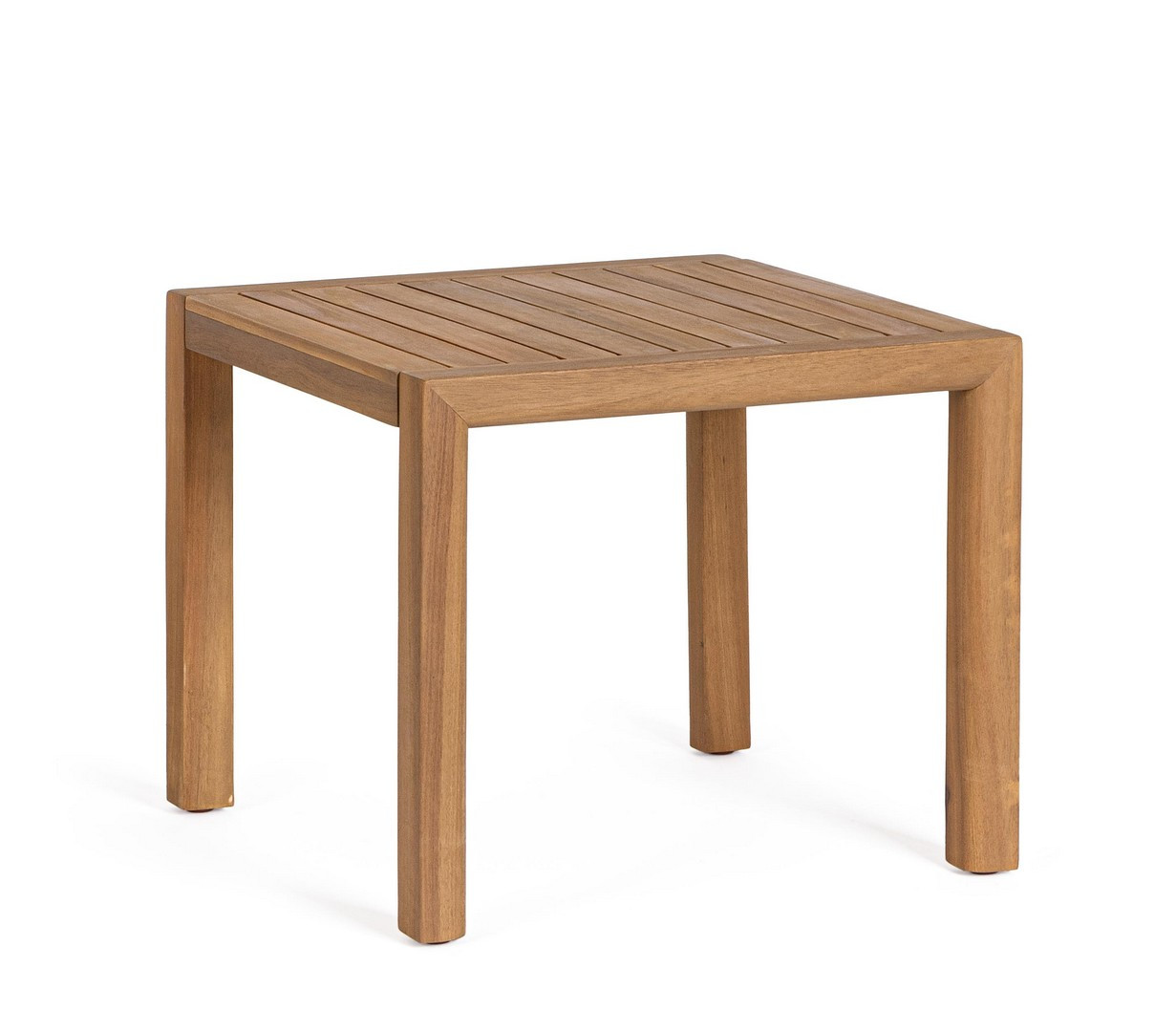 Tavolino Danubio 47x47 di Bizzotto è il tavolino di design in legno di acacia fsc 100%, finitura a olio (effetto teak). Viteria in acciaio galvanizzato. Gambe da assemblare.