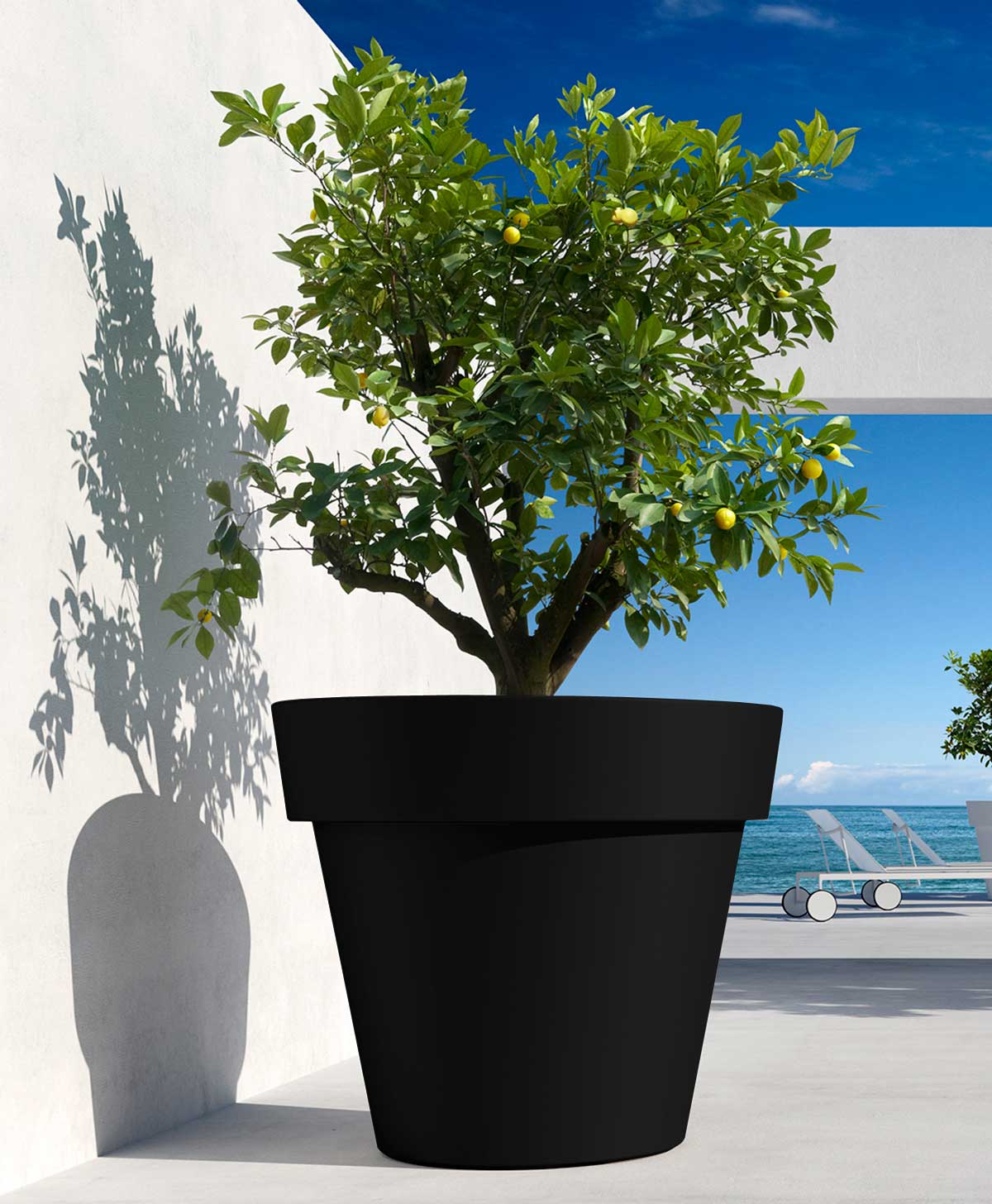 Ikon Ø 100 è il vaso da giardino in polietilene dal diametro di 100 cm per 89 cm di altezza. Un 'colosso' del design outdoor che ben si presta anche per arredare spazi interni di grande portata. Disponibile in 8 colorazioni è un complemento d'arredo ever green che saprà stupirti e stupire i tuoi ospiti.