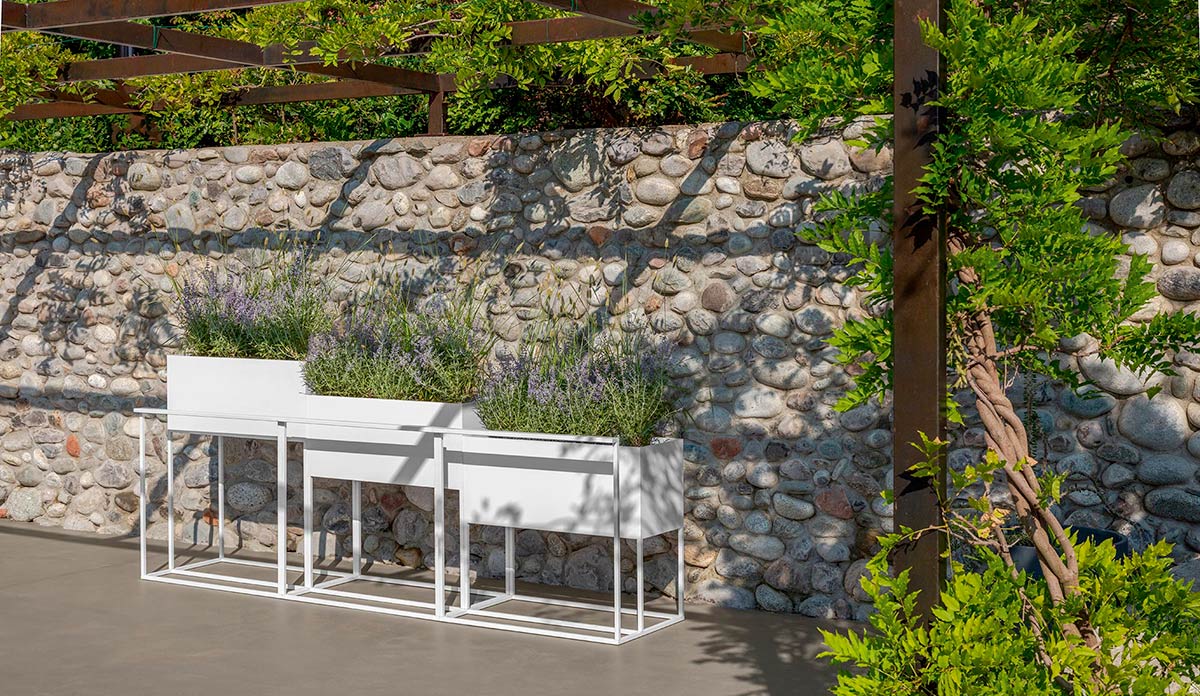 Path Fioriera H100 di Talenti è la fioriera da esterno con struttura in acciaio inox e verniciatura a polvere, nelle varianti colore bianco (I4) e grafite (I5). Disponibili in 3 diverse altezze con la possibilità di avere il corrimano.
