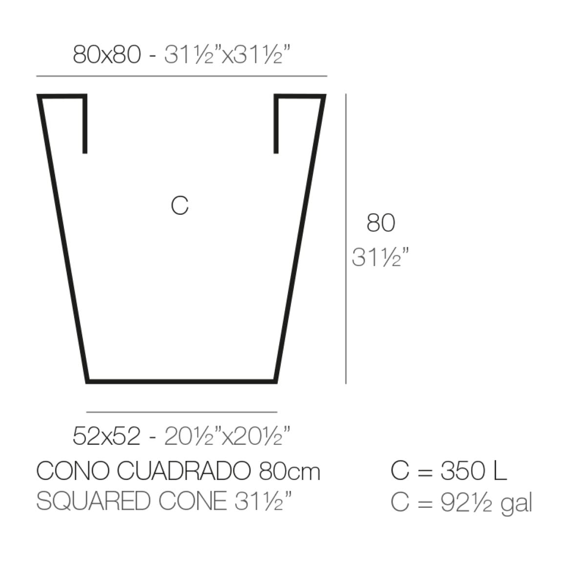Cono Cuadrado Vaso 80x80x80 cm