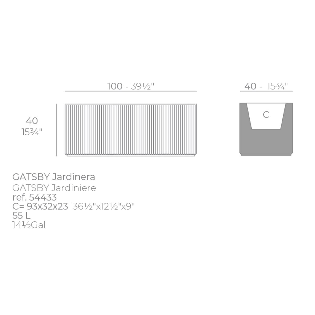 Gatsby Fioriera 100x40x40 cm