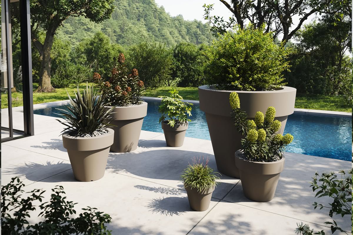 Vaso realizzato in resina di polietilene a doppia parete con vasca interna per piante decorative