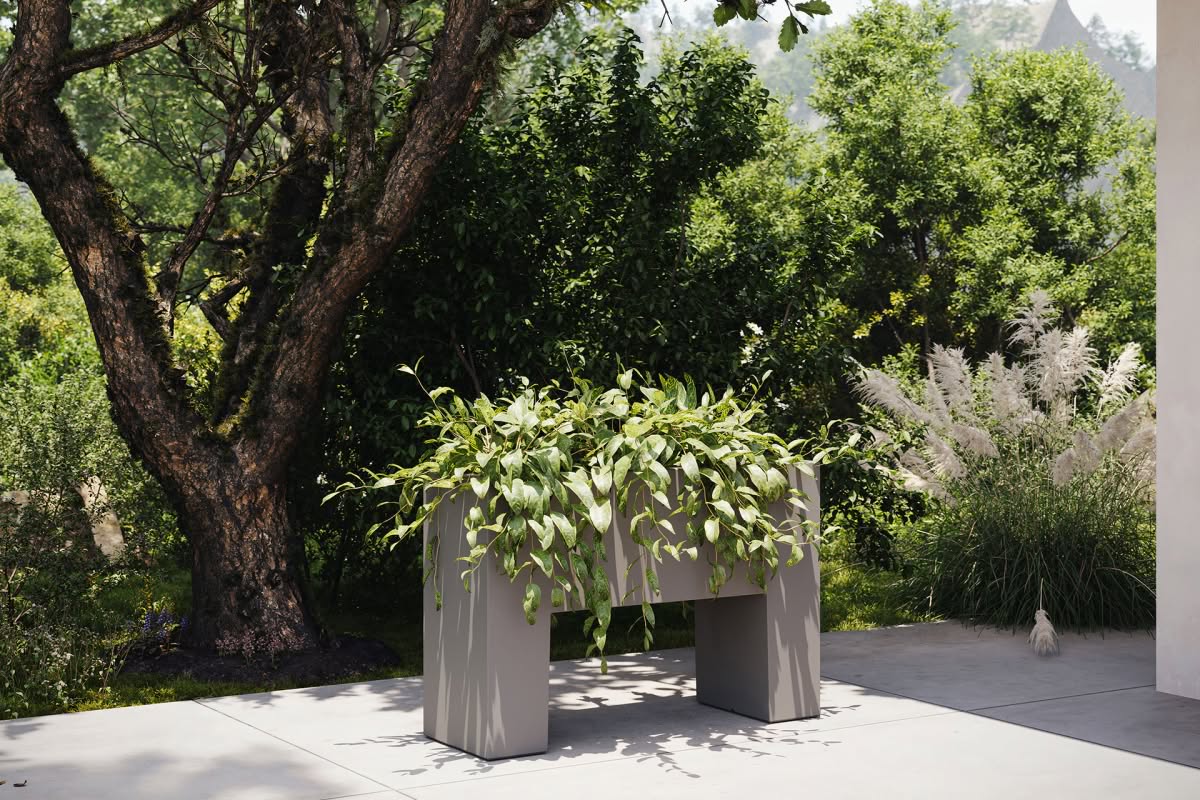 Vaso realizzato in resina di polietilene a doppia parete con vasca interna per piante decorative