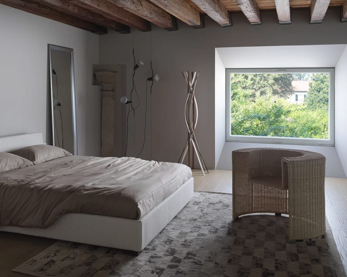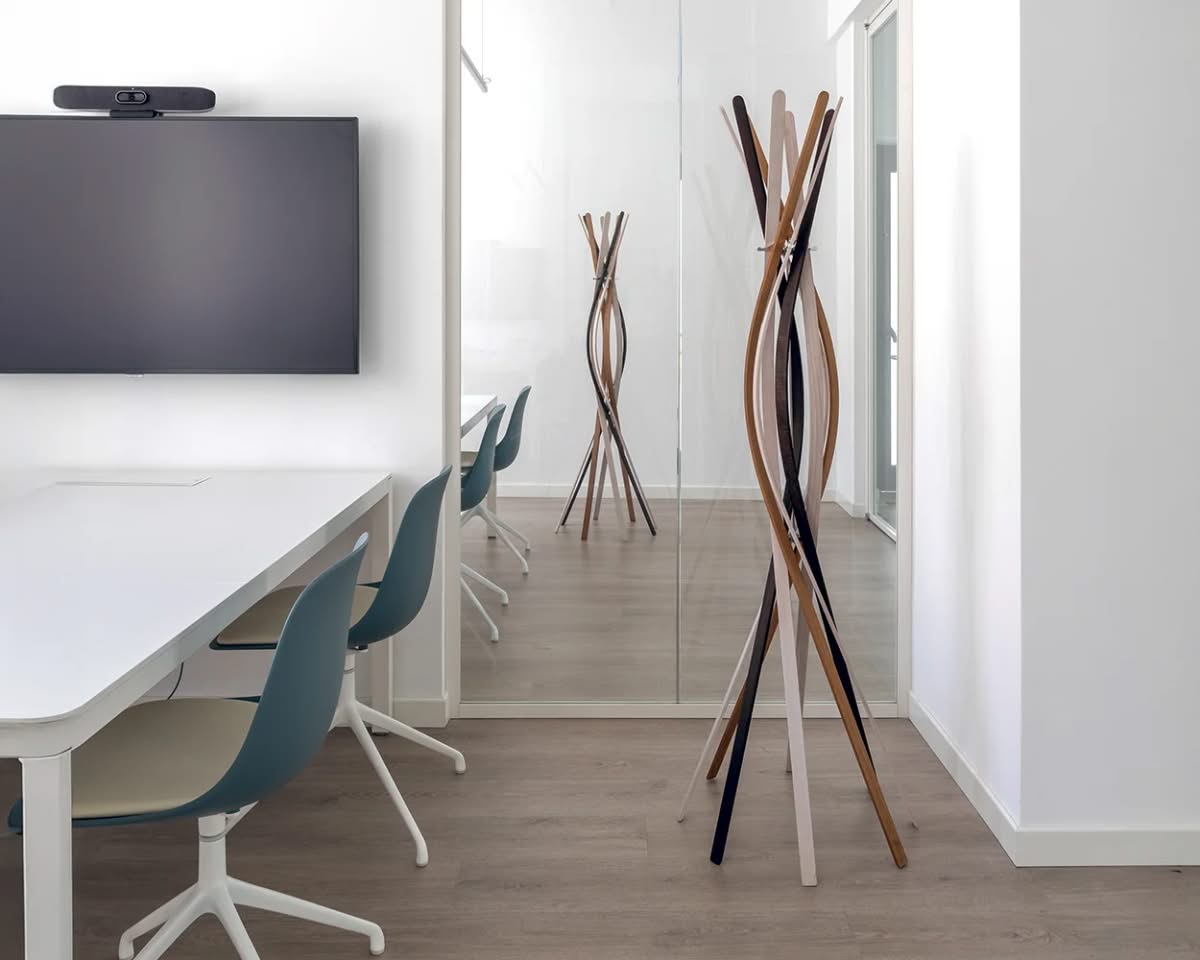 Twist Appendiabiti di Horm è l'appendiabiti di design composto da elementi in legno massello di faggio curvati e tinti all’acqua. Horm va a tempo di twist con l’appendiabiti creato da Burtscher & Bertolini. Gli otto listelli che lo compongono si piegano e si torcono come se stessero ballando. La loro tensione elastica è fondamentale per conferire all’appendiabiti eccellenti qualità sia in termini di forma che di stabilità. Twist risponde a un’osservazione: l’appendiabiti solitamente sparisce quando ci si appendono i capi. Twist non viene nascosto. Viene invece messo in evidenza perché l’unica parte ad essere coperta è quella centrale. Gli indumenti si possono appendere ai ganci infilati nei listelli permettendo alla parte superiore di Twist, uno splendido “fiore di legno”, di emergere in tutta la sua eleganza. Twist è un appendiabiti scultoreo che unisce dinamismo formale e funzionalità. Gli otto listelli in legno curvato che lo compongono si piegano e si torcono come in una danza, generando un movimento armonico che cattura lo sguardo. La tensione elastica del legno è l’elemento strutturale che dona a Twist stabilità e leggerezza visiva al tempo stesso. A differenza dei tradizionali appendiabiti, che vengono celati dai capi, Twist rimane sempre protagonista: gli indumenti si appendono ai ganci nascosti tra i listelli, lasciando visibile la parte superiore, un raffinato “fiore di legno” che diventa elemento decorativo dello spazio.
