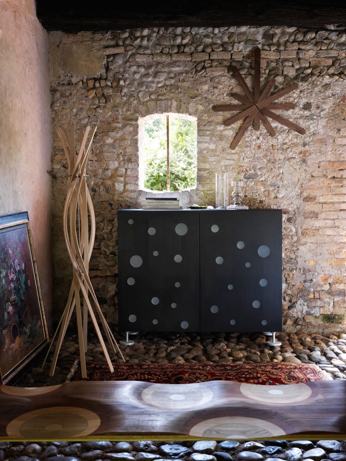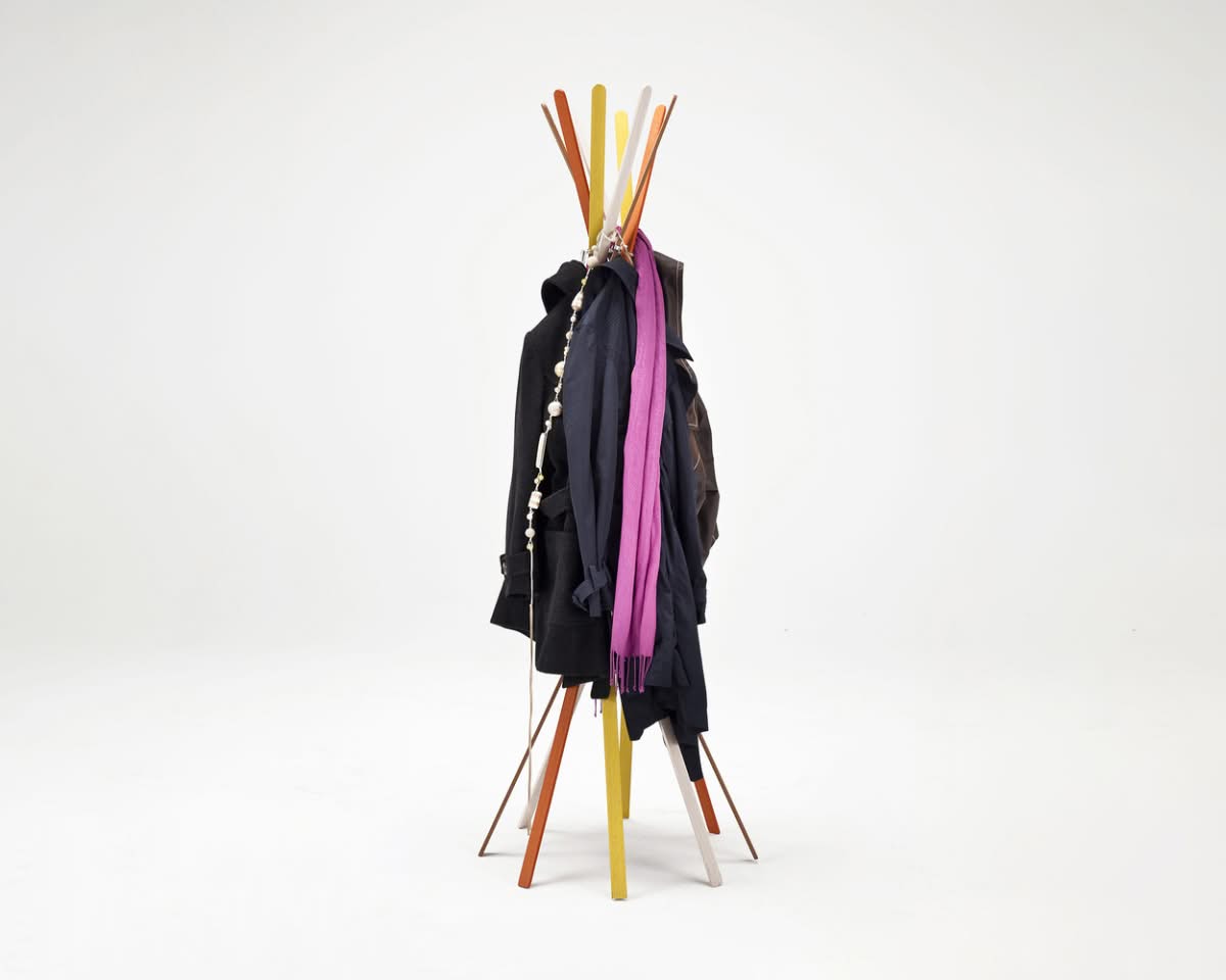 MATERIALI: Appendiabiti composto da elementi in legno massello di faggio curvati e tinti all'acqua.