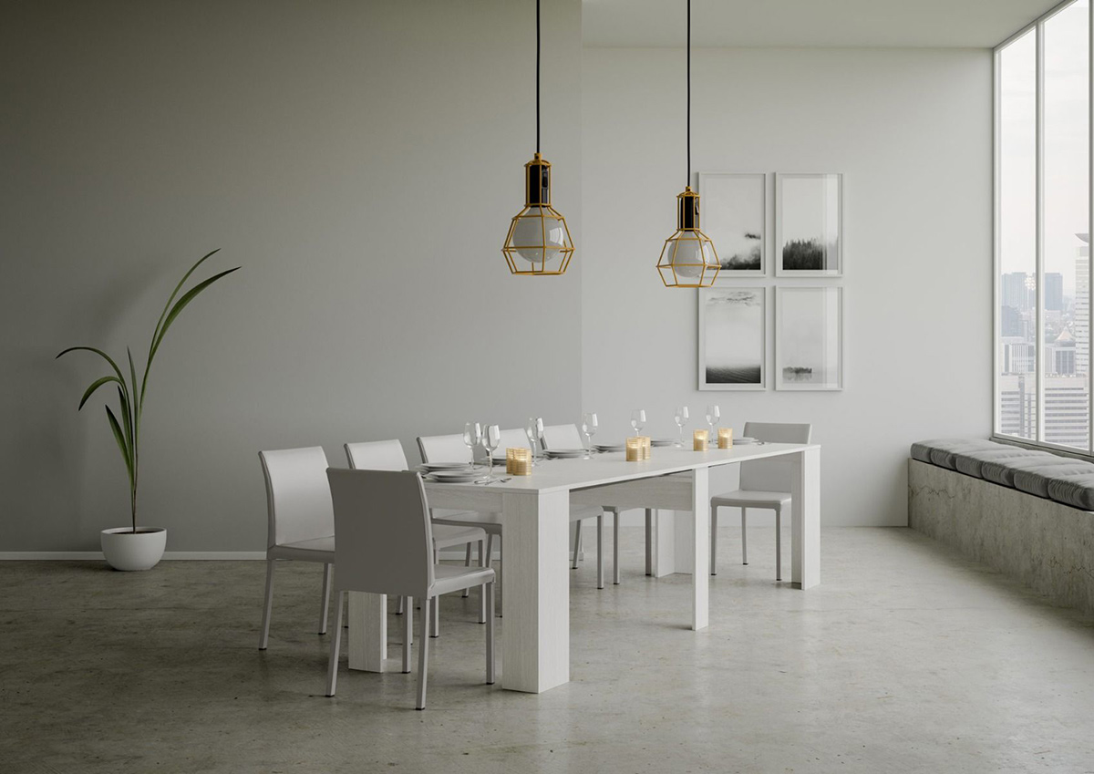 La consolle allungabile Basic è caratterizzata dalla semplicità delle sue forme. Il nome suggerisce le sue peculiarità intrinseche; essenziale e pratica all'occorrenza. La consolle Basic è estremamente stabile e robusta, pronta per ospitare tutti i tuoi ospiti in totale relax. In pochi istanti, attraverso l'utilizzo delle pratiche allunghe da cm.52 integrate raggiunge la lunghezza massima di 308 cm trasformandosi in un comodo e spazioso tavolo da pranzo in grado di ospitare fino a 14 persone! Viene proposta nella splendida finitura lignea bianco frassino e noce racchiudendo raffinatezza e semplicità. La trasformazione si racchiude nei concetti di eleganza e ottimizzazione, nuovi spazi e comodità per coloro che amano vivere momenti conviviali indimenticabili. Non rinunciare alla qualità, scegli il Made in Italy!