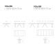 Piano e allunga in particelle di legno classe E1 a bassa emissione di formaldedie con bordo in abs o melaminico. Struttura in metallo verniciato a polveri epossidiche in tinta opaca. Estensori in alluminio.