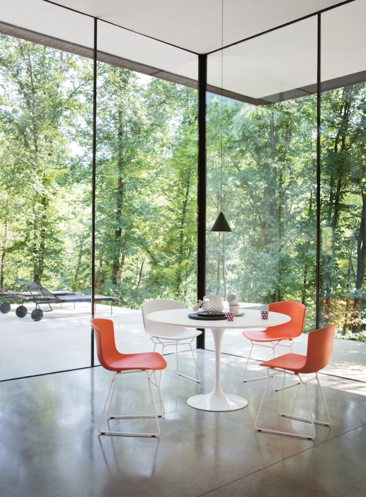 Knoll Saarinen Tavolo Tulip Lounge Ø 91 H 64-65 Laminato Bianco è il tavolo icona originale del Design del '900 progettato da Eero Saarinen nel 1957. Un trionfo di arte e tecnologia, la collezione Pedestal accosta l'approccio più scultoreo di Saarinen alla sua visione globale dell'architettura, per una collezione che rappresenta un importante traguardo per il design moderno con complementi d'arredo senza tempo che segnano la vittoria sull’antiestetico groviglio di gambe delle sedie e dei tavoli tradizionali. Non è infatti un caso se alcune tra le più importanti architetture pubbliche degli Stati Uniti negli anni ’50 e ’60 sono state firmate da Eero Saarinen. I suoi terminal aeroportuali, monumenti, uffici, università hanno sempre risposto allo spirito della contemporaneità, divenendo veri e propri landmark. Grazie alla collaborazione con Florence Knoll, egli progetterà arredi destinati anch’essi a passare alla storia. Come nel caso della Pedestal Collection, simbolo imperituro di un’idea di arredo che fonde scala architettonica e design sotto il segno della continuità di forma. Il tavolo Saarinen è un pezzo d'arte che diviene un classico cambiando la storia della sua epoca e continuando ad essere sempre attuale in ogni tempo, in virtù di quel principio del Modern Always® che domina il mondo Knoll coniugando l’idea di innovazione alla tradizione, con la capacità di pezzi estremamente versatili, in grado di soddisfare non solo gusti personali, ma tendenze epocali. Oggi che il cambiamento richiede rapidità nell’adattamento, Knoll risponde con i suoi classici sempre affidabili e concreti. Perché il valore è qualcosa che anticipa le necessità con la visione, trasformando il bisogno del momento in un classico senza tempo. DISPONIBILI SU RICHIESTA TUTTI I MATERIALI E/O TESSUTI DI RIVESTIMENTO DEL CAMPIONARIO KNOLL Storia del prodotto - Con la Pedestal Collection, Eero Saarinen si ripromise di eliminare la "baraccopoli di gambe" che si trovava sotto sedie e tavoli a quattro gambe. Lavorò inizialmente con centinaia di disegni, seguiti da modelli in scala 1/4. Poiché l'idea stimolante era quella di progettare sedie che facessero bella figura in una stanza, i mobili modello furono allestiti in una stanza con modelli in scala delle dimensioni di una casa delle bambole. Attingendo alla sua prima formazione come scultore, Saarinen perfezionò il suo design attraverso modelli in scala reale, modificandone all'infinito la forma con l'argilla. "Ciò che mi interessa è quando e dove utilizzare queste forme plastiche strutturali. Esplorando ancora più a fondo le diverse possibilità, si scopre che molte forme diverse sono ugualmente logiche: alcune brutte, altre emozionanti, alcune terrene, altre ancora svettanti. Le scelte diventano davvero una scelta dello scultore." Saarinen fu assistito da Don Petitt, del Design Development Group di Knoll, che introdusse diversi ingegnosi metodi di modellismo. Insieme a un team di ricerca e design di Knoll, affrontarono i problemi che si presentavano in fase di produzione. I modelli in scala reale divennero mobili e, con familiari e amici che fungevano da "cavie", i mobili furono testati nella sala da pranzo e nel soggiorno di casa Saarinen a Bloomfield Hills. MANUTENZIONE PRODOTTI