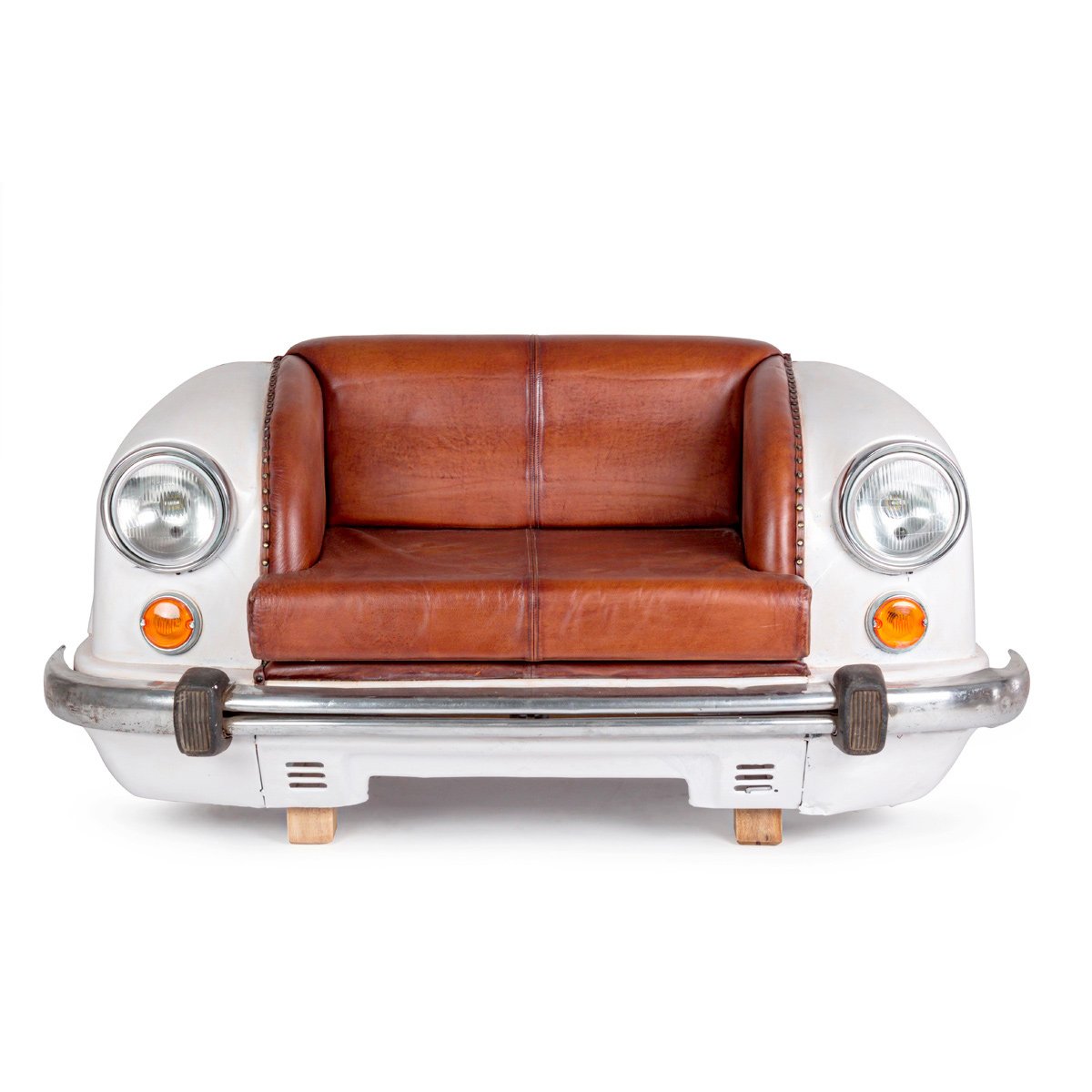 Il Divano Ambassador bianco è una divano di design esclusivo, inconfondibile nel suo genere. Trattandosi di carrozzeria originale, ogni modello puo' variare in piccoli particolari costruttivi, eventuali piccole crepe o spaccature sono da ritenersi caratteristiche proprie al naturale lavoro di recupero donando così un'assoluta esclusività e valore aggiunto. La struttura è in legno massello di mango, telaio in acciaio e rivestimento in vera pelle di bufalo. Il divano Ambassador bianco è la soluzione ideale per arredare con un design esclusivo zone bar, living , aree relax di ambienti domestici o contract.