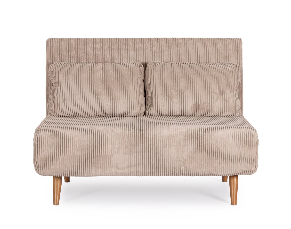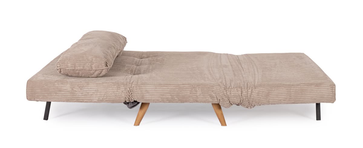 Divano Letto 2P Walker beige Bizzotto | Divano letto design in legno, acciaio e tessuto effetto velluto