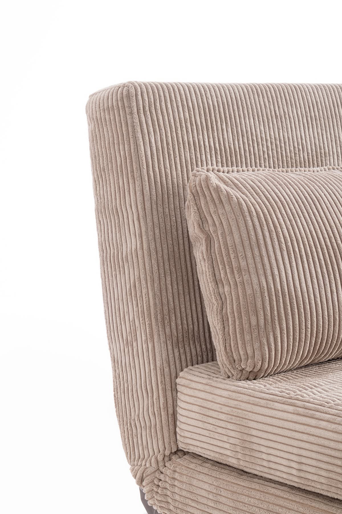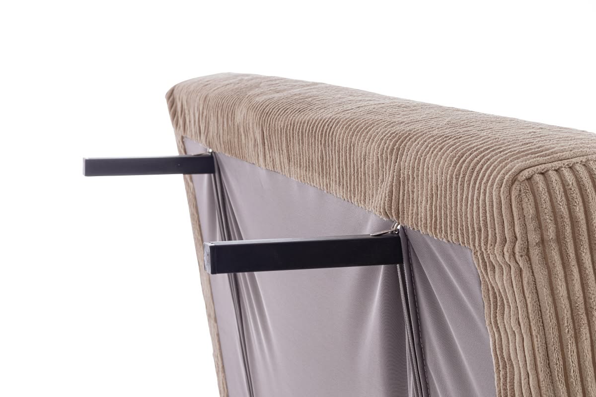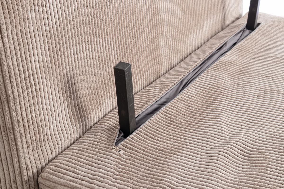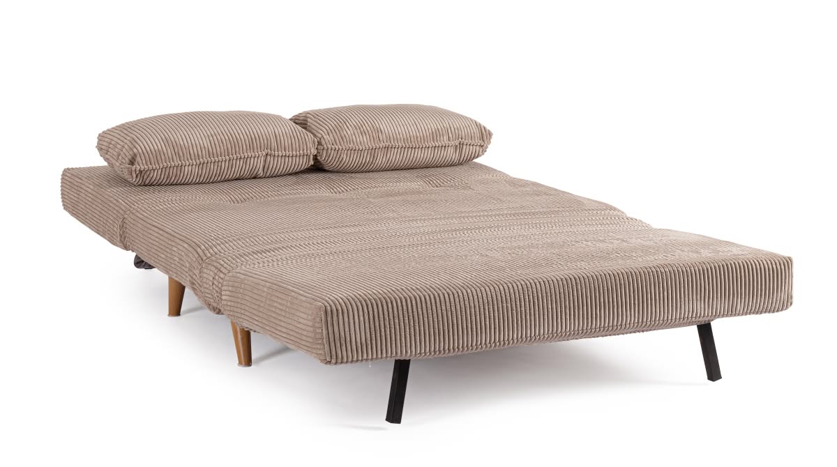 Divano Letto 2P Walker beige by Bizzotto è un divano-letto di design con struttura in acciaio e compensato. Gambe in acciaio effetto legno, gambe letto in acciaio. Doppio strato di schiuma poliuretanica densita' 24 kg/m3. Rivestimento in tessuto 100% poliestere a costine effetto velluto. Cuscino sfoderabile. Da assemblare.