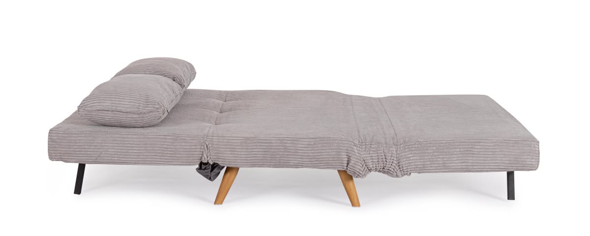 Divano Letto 2P Walker tortora Bizzotto | Divano letto design in legno, acciaio e tessuto effetto velluto