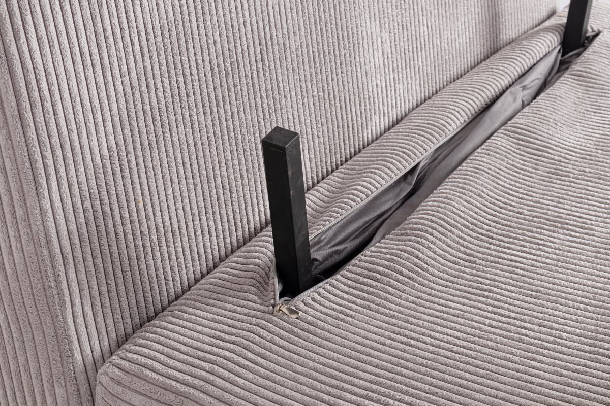 Divano Letto 2P Walker tortora by Bizzotto è un divano-letto di design con struttura in acciaio e compensato. Gambe in acciaio effetto legno, gambe letto in acciaio. Doppio strato di schiuma poliuretanica densita' 24 kg/m3. Rivestimento in tessuto 100% poliestere a costine effetto velluto. Cuscino sfoderabile. Da assemblare.