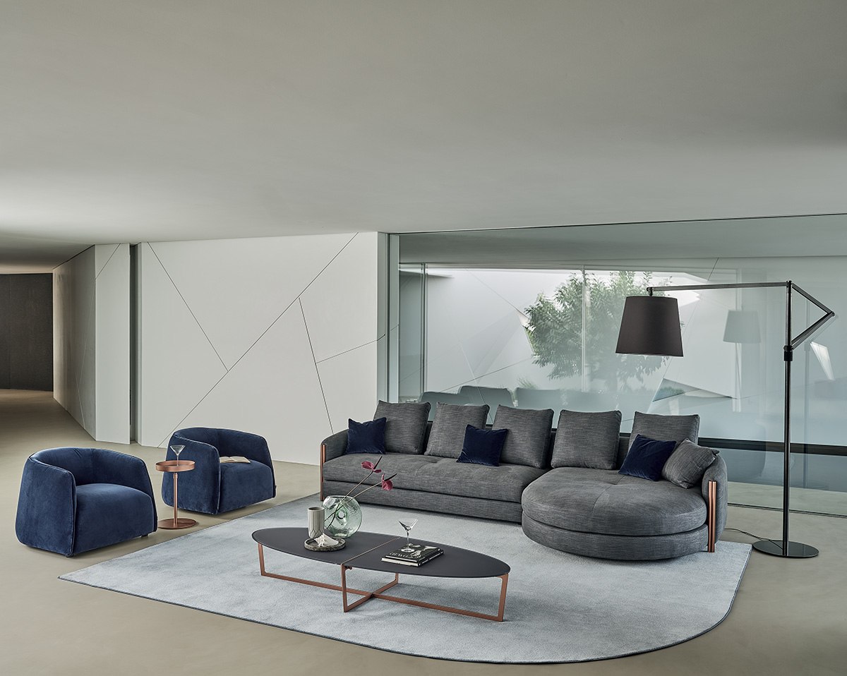 Bonnie 2 posti è il divano da interni firmato Bontempi Casa che fa parte di un vero e proprio sistema di arredo che combinando la modularità dei suoi elementi con gli accessori a lui dedicati risponde ad esigenze di design, comodità e funzionalità. Un’eleganza dal design anni’70, in grado di impreziosire qualsiasi ambiente donando quell’indiscutibile valore aggiunto. Una perfetta armonia tra struttura e forma. I suoi dettagli decorativi, costituiti da impunture nella seduta e dai due tubolari metallici frontali, contribuiscono alla sua ricercatezza e personalizzazione. Il generoso utilizzo della piuma d’oca all’interno delle cuscinature, garantisce un elevato livello di comfort, oltre a conferire a tutto l’ambiente un aspetto vivo e accogliente. I divani e le poltrone Bontempi Casa sono elementi di design unici per la zona living, caratterizzati da un design originale e inconfondibile, con tessuti innovativi e forme che conferiscono carattere e facilità d’uso. La vasta selezione di elementi componibili consente la creazione di una serie ricchissima di composizioni dal design ricercato che non rinuncia ad offrire elevati standard di comodità, grazie alla conformazione degli schienali e delle sedute. Cuscini arredo su richiesta. Scopri tutte le combinazioni disponibili, scegli la qualità, scegli il design made in Italy!