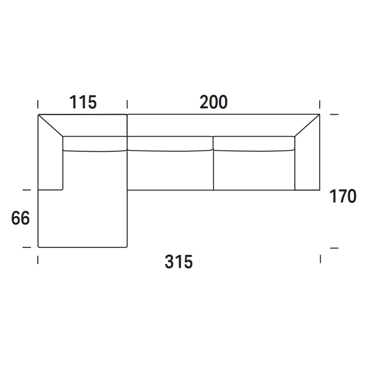 Composto da: laterale 3 posti Large e chaise longue Large