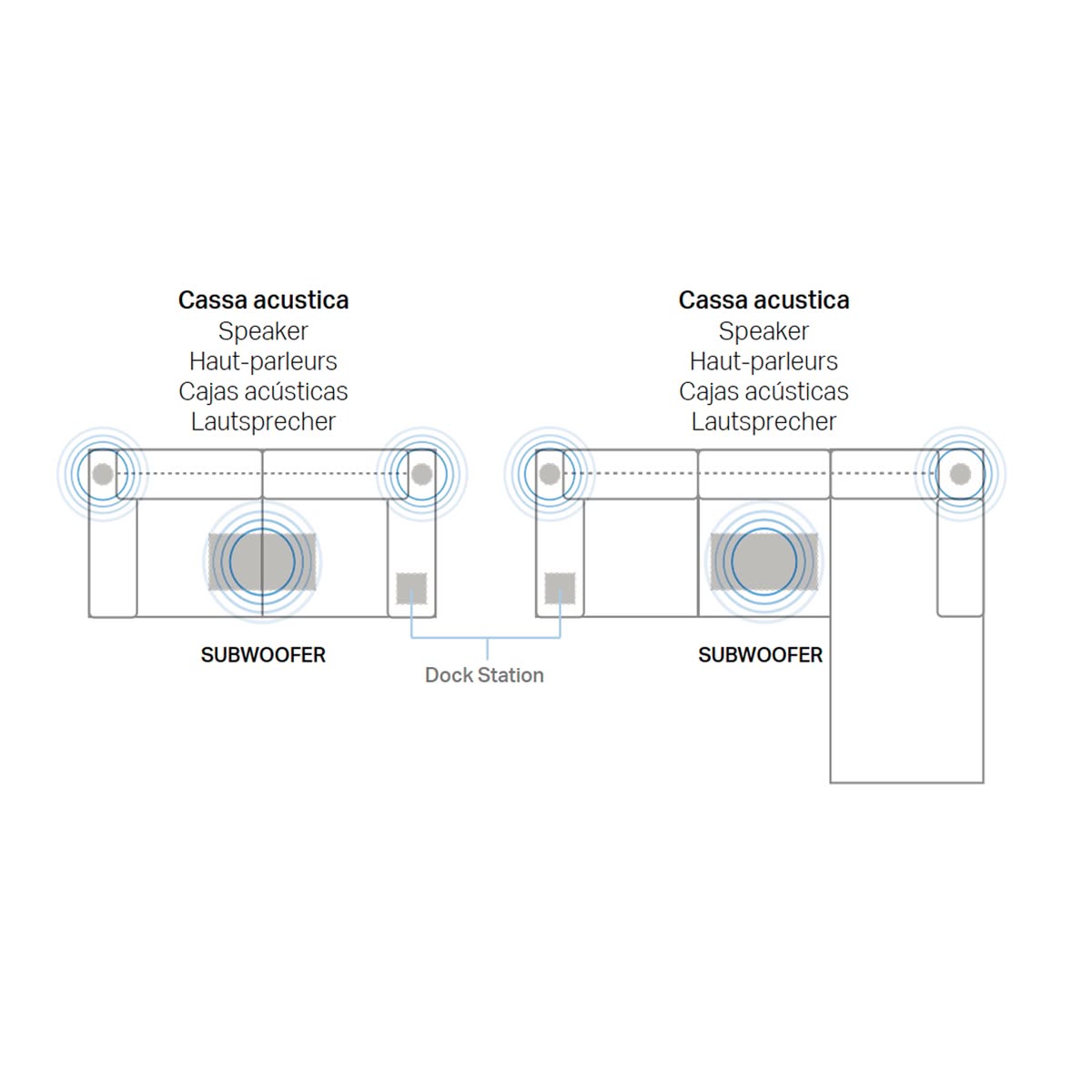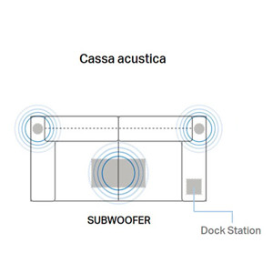L’angolo del divano può essere dotato (optional) di un tecnologico impianto di diff usione stereo incorporato e una docking station dove è predisposto l’aggancio per i-phone, i-pod o qualunque altro dispositivo che possa essere collegato tramite bluetooth o porta usb. È disponibile anche il lettore sdcard, oltre naturalmente all’uscita aux: i dispositivi, una volta collegati, si ricaricano.