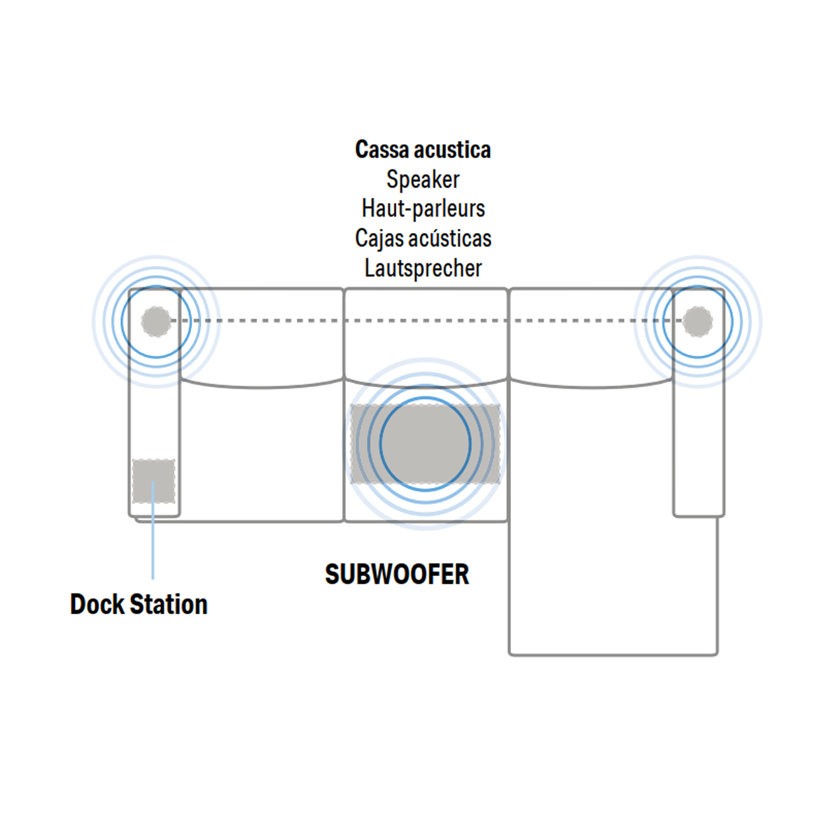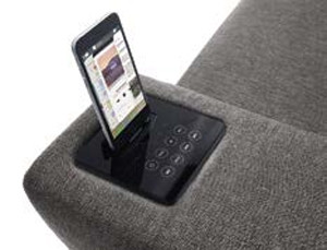 L’angolo del divano può essere dotato (optional) di un tecnologico impianto di diff usione stereo incorporato e una docking station dove è predisposto l’aggancio per i-phone, i-pod o qualunque altro dispositivo che possa essere collegato tramite bluetooth o porta usb. È disponibile anche il lettore sdcard, oltre naturalmente all’uscita aux: i dispositivi, una volta collegati, si ricaricano.