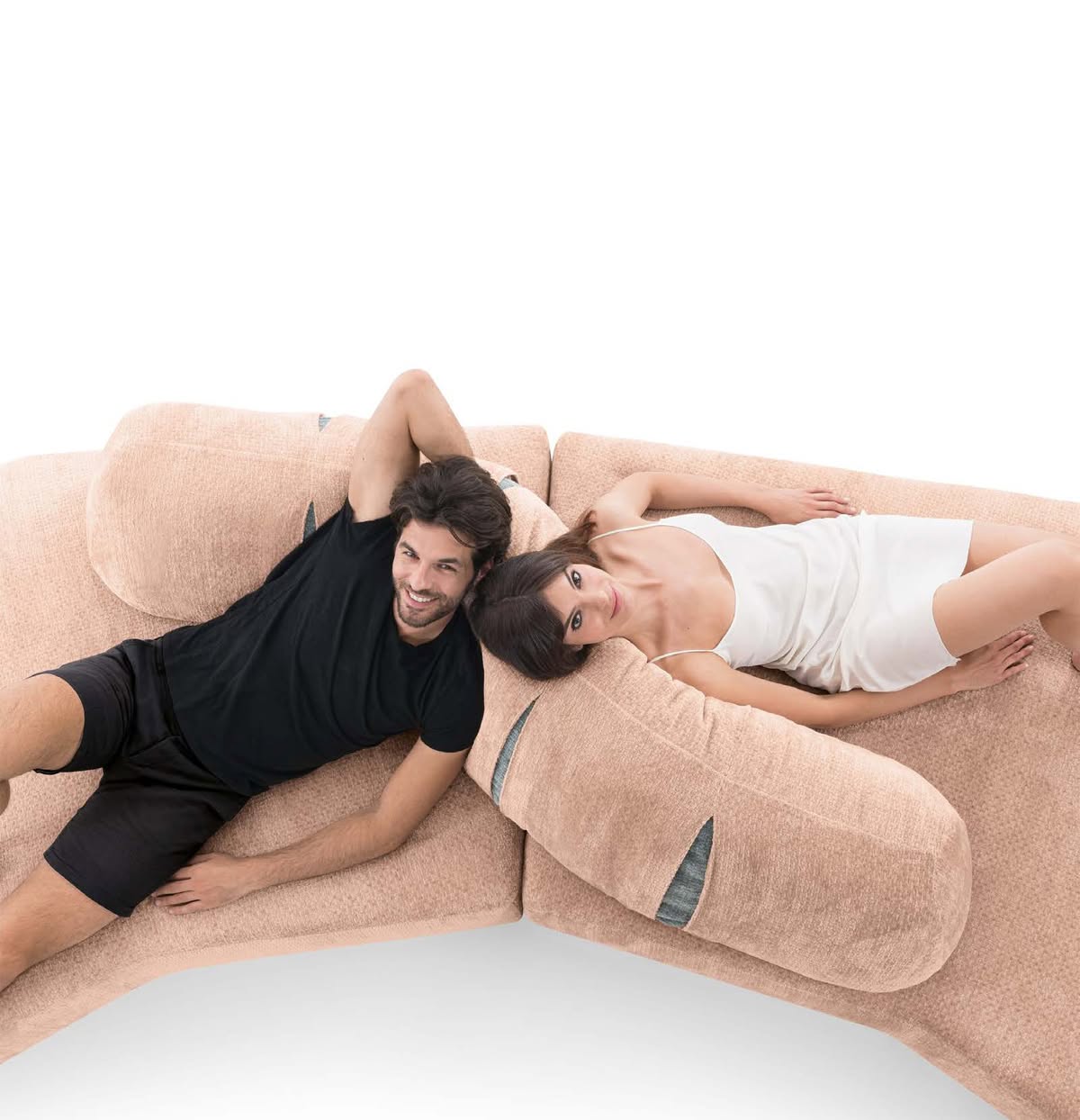 Sedute in espanso indeformabile 30SR ricoperto con resinato da 200 gr. accoppiato a maglina 100% poliestere. Schiene in espanso indeformabile FEE21 ricoperto con resinato da 200 gr. accoppiato a maglina 100% poliestere. Cuscini schiena in “pelle d’uovo”, cotone, poliestere a camere separate riempite con misto piuma sterilizzata e fiocco di poliestere vergine 100%.