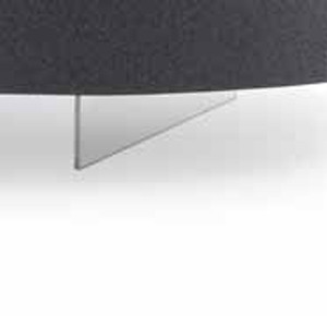 In metallo pressofuso H.14 in due finiture: Nero opaco e Acciaio satinato. Dotato di gommino antiscivolo. Piede in vetro trasparente H.14 fissato alla struttura tramite apposito sistema a staffe. Dotato di polimero trasparente fungente da antiscivolo e antigraffio.