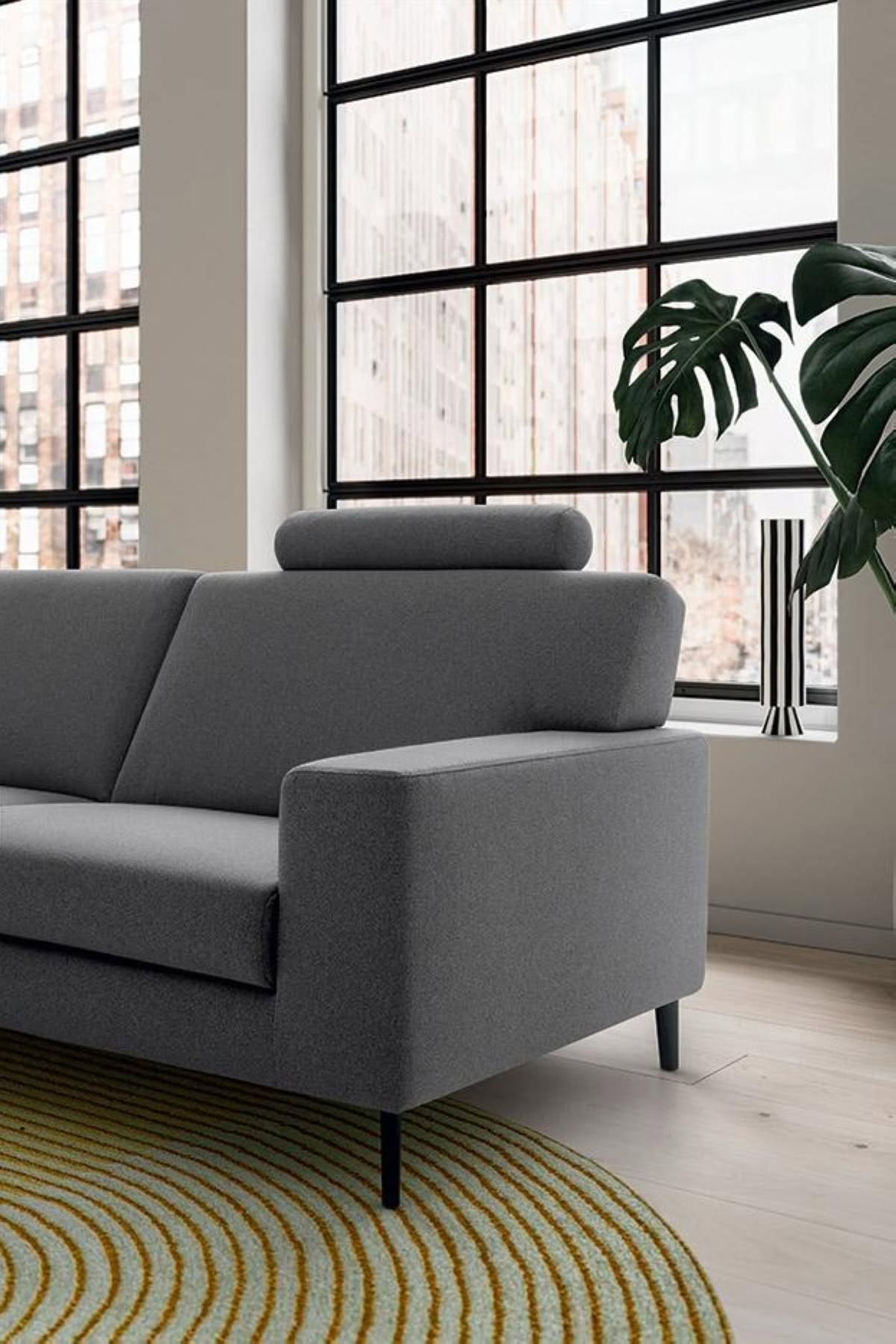Liam Divano 3 Posti Large Felis è il divano di design dalla ridotta profondità e dal comfort sorprendente. Liam risponde alla necessità di arredare spazi ristretti, senza rinunciare alla morbida comodità che tutti giustamente richiediamo al nostro divano. Il telaio ultra compatto, con profondità 88 cm, è studiato infatti per mantenere intatto lo spazio di seduta, garantendo così il meritato relax ovunque si desideri. Gli alti piedini che sollevano il divano dal pavimento contribuiscono a rendere eleganti le linee di Liam. Sono disponibili sia in versione nero opaco che in versione satinata, per venire incontro alle varie esigenze estetiche. Diverse configurazioni, diff erenti modi di interpretare stile e benessere. Aggiungendo un elemento componibile si può creare, per esempio, un’ulteriore seduta o una chaise longue per distendere le gambe.