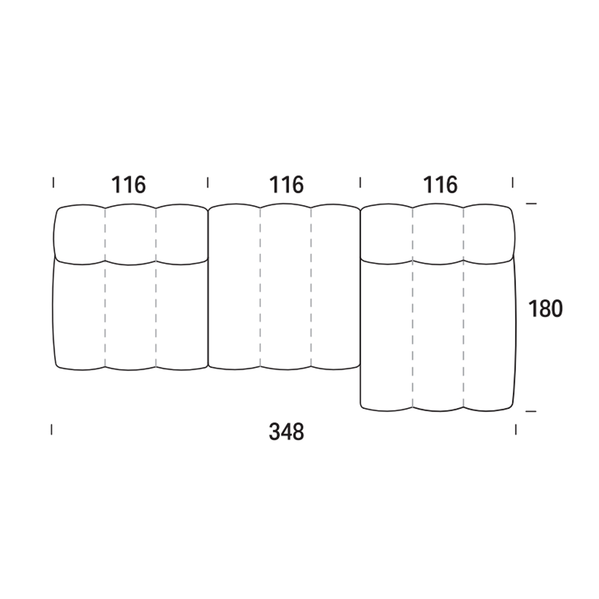 Muffin Divano Composizione 2 Felis è un divano di design composto da tre soli elementi: una poltroncina, una chaise longue e un pouf. Tre componenti che, combinati insieme, generano una magica alchimia. Prendono così forma mille composizioni, mille storie diverse da raccontare. Sempre però a lieto fine: grazie alla dolce morbidezza delle sue forme, nelle quali immergersi e lasciarsi coccolare, con Muffin “vissero tutti felici e contenti”. Ogni elemento del programma Muffin è pensato anche per essere indipendente. Come la comoda e versatile poltroncina, perfetta per ogni ambiente. Combinando a piacere i tre moduli, è possibile dare vita al proprio divano ideale, con profondità di seduta diverse e configurazioni che vanno dalla più classica alla più creativa. Difficile rinunciare alla comodità di distendersi su una soffice chaise longue. Tutti gli elementi sono uniti tra loro tramite un pratico sistema di aggancio a staffe brevettato da Felis. Lo stile di Muffin è definito dall’elegante trapuntatura, dal taglio obliquo che unisce in un tutt’uno seduta e schienale e dai volumi morbidi ed essenziali, che rendono superfluo persino il bracciolo.