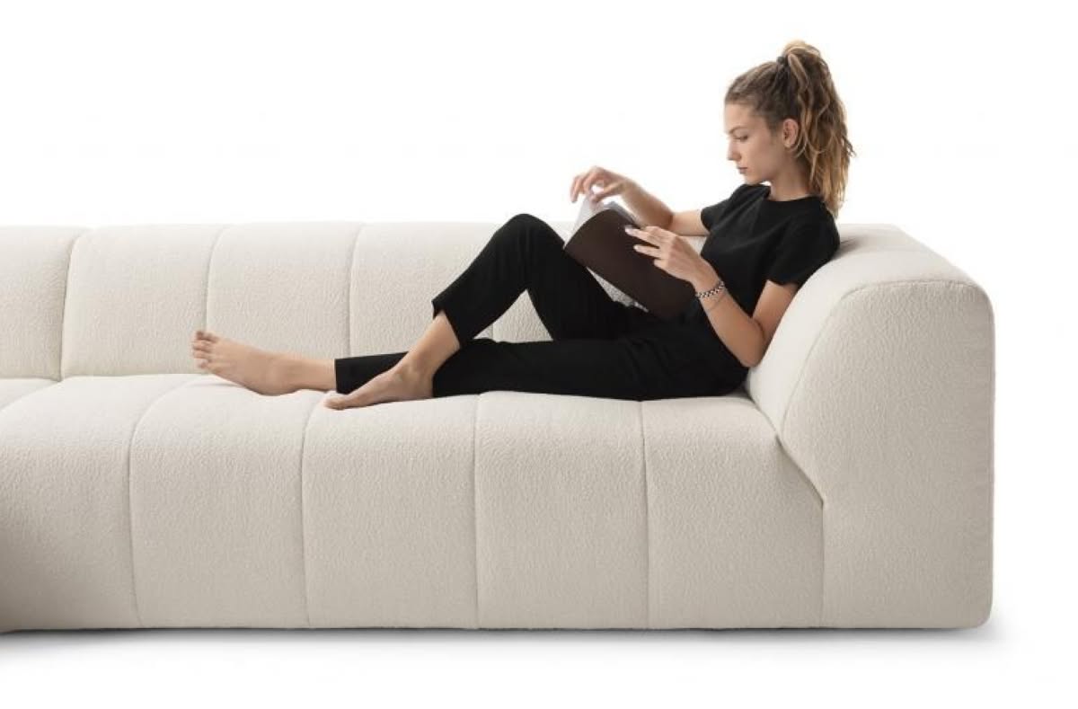 Pantheon Divano Composizione 1 Felis è il divano di design divinamente comodo. Esteticamente intrigante, con linee ricamate che si rincorrono come colonne di un tempio. Pantheon apre così le porte a un maestoso relax. Una delle diverse interpretazioni di Pantheon: la versione a pozzetto, chiusa ai lati, offre una composizione classica e molto elegante, perfetta per qualsiasi contesto. Chi opta per la composizione senza braccioli in chiusura sceglie un modo alternativo di vivere il divano, senza vincoli, per stendersi comodamente a tutta lunghezza. Il pouf quadrato o rettangolare aggiunge un tocco irrinunciabile di comfort creativo alla zona living, completando così la composizione angolare. Pensato per essere comodo in qualsiasi modo ci sediamo, distendiamo o sdraiamo: Pantheon è il migliore alleato per il meritato comfort quotidiano. La forma del morbido bracciolo, leggermente inclinata verso l’interno, è studiata per accogliere in modo confortevole la schiena, fungendo da schienale aggiuntivo. Chaise longue, angolari, laterali aperti: giocando con i vari elementi disponibili, Pantheon assume la forma più congeniale alle proprie esigenze di arredamento e di relax. Il ricamo, presente sia sul fronte che sul retro, nasce da un’accurata lavorazione che impreziosisce e dona movimento al divano, equilibrando il suo sviluppo spiccatamente orizzontale.