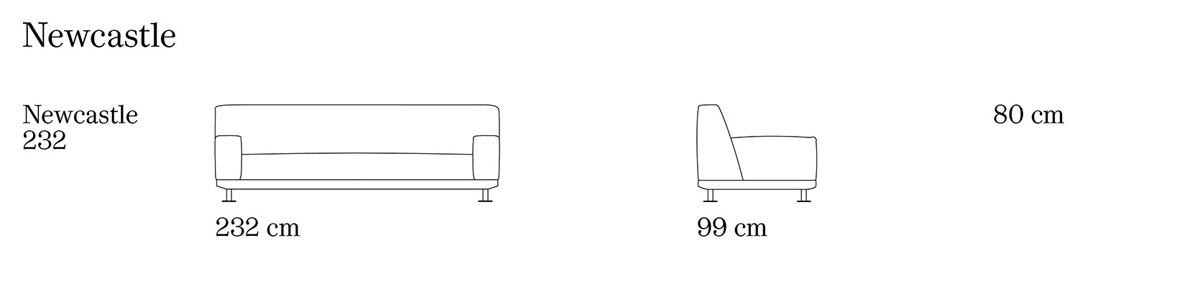 Meritalia Newcastle 232 Divano è il divano di design fortezza, progettato da Giulio Iacchetti, solido e accogliente, la cui superficie ricalca le irregolarità naturali della pietra. Struttura in legno e metallo, imbottiture in poliuretano con materassino in piuma d’oca. Mettersi in discussione, e proporre oggetti dalle caratteristiche imprevedibili fa parte del DNA di Meritalia®. Staticità e dinamismo sono due forze opposte, che si fondono in Newcastle, divano monolitico fatto per accogliere, per proteggere, per far sentire a casa. Il progetto del divano, disegnato da Giulio Iacchetti, si basa sulla materializzazione del senso di protezione che associamo all’interno domestico; Newcastle è una fortezza accogliente, basata su una solida struttura in legno e metallo, con piedini in metallo, imbottiture flessibili in poliuretano e un materassino in morbida piuma d’oca per ingentilire la seduta. Newcastle è rivestito in pelle con un ricercato effetto stropicciato, il cui aspetto evoca le irregolarità naturali della pietra: un rivestimento durevole ma che cambia, si increspa e distende, evolve con l’esperienza dell’uso. Questo rivestimento pietrifica i volumi rassicuranti del divano in solidi monoliti strutturali, assemblati tra loro come i contrafforti di un castello. Con Newcastle, Meritalia® crea un radicale incontro tra due tempi: una qualità estetica e un riferimento alla fortezza medievale che incontra volumi, geometrie e materiali moderni, generando un arredo confortevole e di funzionale brutalismo.