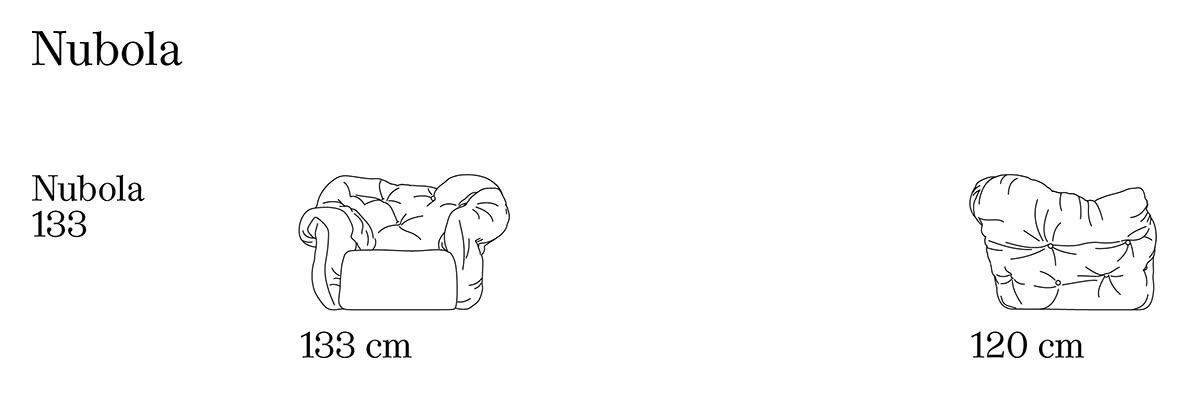 Meritalia Nubola 133 Poltrona è la poltrona di design a seduta rigida progettata da Gaetano Pesce, con schienale in soffice poliuretano espanso dalle forme irregolari, come cumuli di una nuvola. Disponibile anche come divano a due posti e a tre posti. Mente tra le nuvole a mani all’opera: Nubola è il risultato del sogno lucido generato dal pensiero brillante e anticonformista di Gaetano Pesce, sognatore radicale per eccellenza. Soffice come un’idea e solido come un divano, Nubola nasce dall’incontro del genio di Gaetano Pesce e la sapienza artigiana degli uffici tecnici e laboratori produttivi di Meritalia®. Artigiani e designer insieme per trovare nuove soluzioni manifatturiere, testare i limiti della materia, e superarli sempre. Cirrocumuli di duttile poliuretano, di diverse dimensioni e volumi, si uniscono a formare un capitonné irregolare, non simmetrico e tanto meno prevedibile, rivestito poi dei materiali più vari e punteggiato da bottoni che ne segnano i nembi. La struttura di base è in legno e acciaio, molleggiata da cinghie elastiche per assicurare sostegno e comodità. La solida seduta e il vaporoso schienale possono inoltre essere rivestiti in colori diversi, per evocare giochi di luce e ombra e trasformare ogni interno in un pezzetto di cielo. Una creazione che sposa costruzioni canoniche con l’approccio incoerente e radicale delle proposte Meritalia®, che catalizzano l’attenzione e, ovunque siano poste, ridefiniscono le coordinate del centro della stanza. D’effetto e insieme comodo, Nubola non è solo la rappresentazione di un sogno a occhi aperti, ma anche un luogo dove questi sogni si fanno: morbido e accogliente, è un divano che invita al riposo, e al contempo risveglia l’immaginazione.