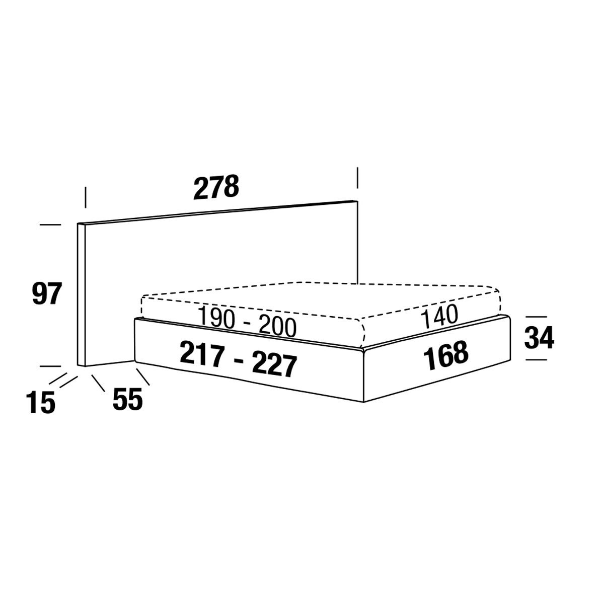 Letto Bowie Color XL Ring Yoshi piazza e mezza Felis è il letto di design dalle linee essenziali e dai volumi importanti per questo letto che esprime un vero e proprio concept d’arredo. Nonostante il piede da 13 cm, con un semplice gesto, la rete si solleva svelando un capace contenitore all’interno del giroletto. Gli elementi a bordo letto inoltre possono essere utilizzati come delle comode sedute. Optional i cuscini. I bordi in contrasto, sottolineano le forme della testiera e del giroletto. I tavolini, realizzati in metallo verniciato grigio piombo, possono scorrere sul giroletto. I tavolini in metallo curvato sono inseribili nel giroletto e diventano comodini, panche e sedute a seconda delle esigenze. Più funzioni quindi con design leggero e versatile. Sono disponibili a richiesta anche i cuscini a misura per l’utilizzo seduta. RETI - per livellare alla stessa altezza reti diverse nello stesso letto MECCANISMI 1. DYNAMIC: meccanica ad alzata semplice collaudata e certificata fino a 5.000 cicli. Telaio in acciaio verniciato a polveri epossidiche e con molle a gas tarate al peso del materasso. CONTENITORE NEL RING