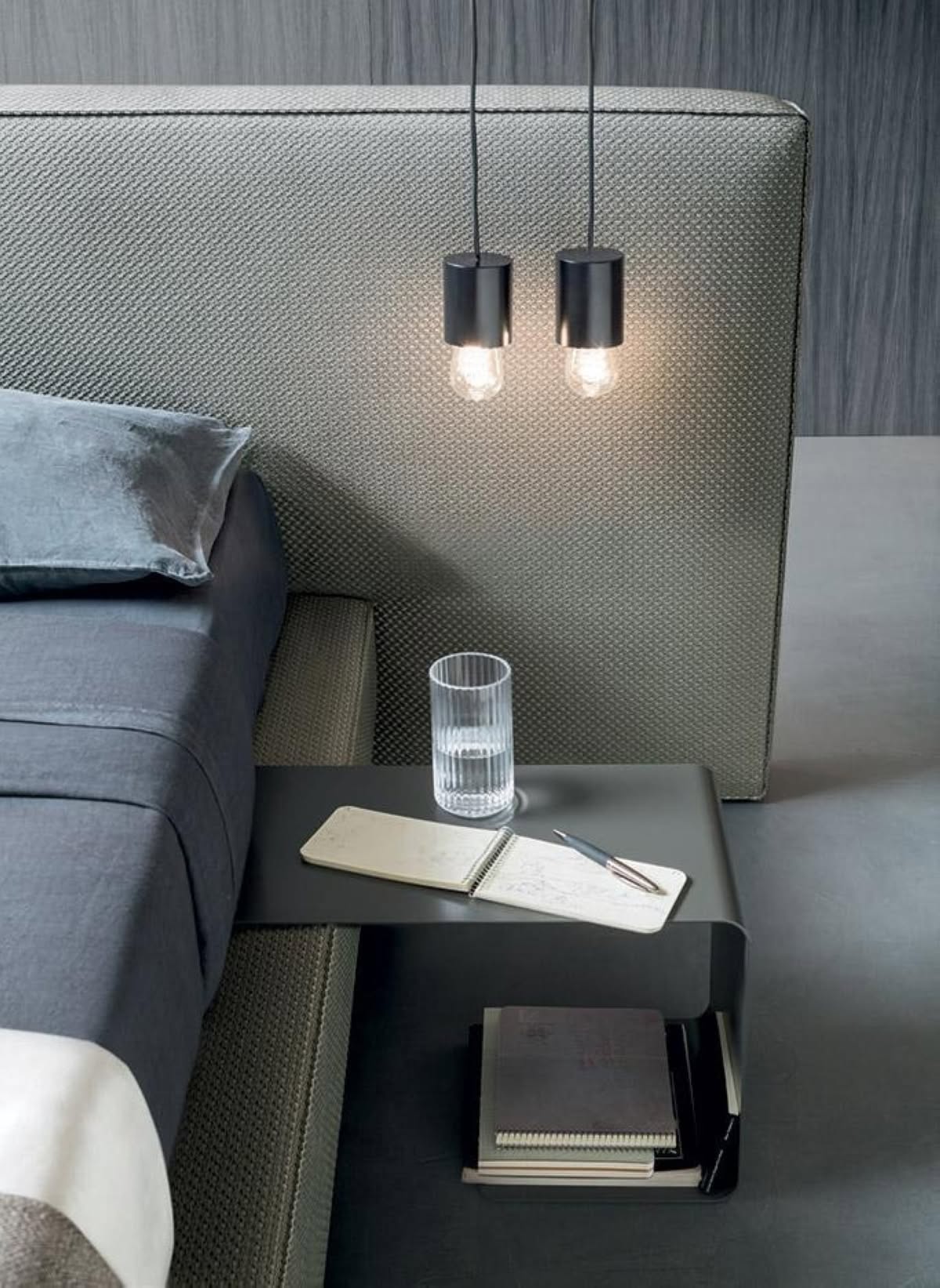 I tavolini in metallo curvato e verniciato grigio piombo sono inseribili nel ring di tutta la nostra collezione letti. Possono diventare comodini, panche e sedute a seconda delle esigenze. Più funzioni con design leggero e versatile. A richiesta sono disponibili i cuscini seduta tubolari realizzabili con tutti i tessuti della collezione.