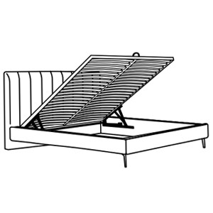 Il piano-rete si alza facilmente e senza sforzo grazie ai due meccanismi sicuri, brevettati E certificati. È facile e veloce e pratico sollevare il materasso e avere accesso ai capaci- contenitori. Il meccanismo tradizionale (A.), consente il sollevamento a 45°. Il secondo (B.), sempre servoassistito, consente sia il sollevamento a 45°, sia il successivo sollevamento di rete e materasso parallelamente al pavimento all'altezza di un metro punto in questo modo si avrà un accesso più diretto ai contenitori e si lavorerà più comodamente per rifare il letto, senza doversi abbassare.