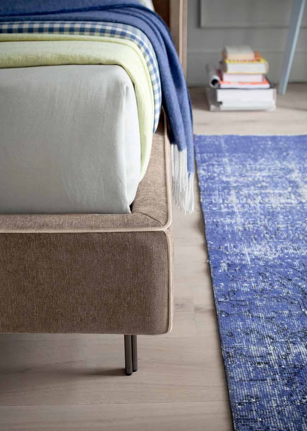 Letto Paris Ring York matrimoniale Felis è il letto di design dalle linee essenziali e dai volumi importanti per questo letto che esprime un vero e proprio concept d’arredo. Nonostante il piede da 13 cm, con un semplice gesto, la rete si solleva svelando un capace contenitore all’interno del giroletto. Gli elementi a bordo letto inoltre possono essere utilizzati come delle comode sedute. Optional i cuscini. I bordi in contrasto, sottolineano le forme della testiera e del giroletto. I tavolini, realizzati in metallo verniciato grigio piombo, possono scorrere sul giroletto. I tavolini in metallo curvato sono inseribili nel giroletto e diventano comodini, panche e sedute a seconda delle esigenze. Più funzioni quindi con design leggero e versatile. Sono disponibili a richiesta anche i cuscini a misura per l’utilizzo seduta. RETI - per livellare alla stessa altezza reti diverse nello stesso letto MECCANISMI 1. DYNAMIC: meccanica ad alzata semplice collaudata e certificata fino a 5.000 cicli. Telaio in acciaio verniciato a polveri epossidiche e con molle a gas tarate al peso del materasso. CONTENITORE NEL RING