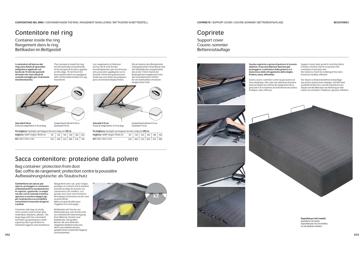 Il piano-rete si alza facilmente e senza sforzo grazie ai due meccanismi sicuri, brevettati E certificati. È facile e veloce e pratico sollevare il materasso e avere accesso ai capaci- contenitori. Il meccanismo tradizionale (A.), consente il sollevamento a 45°. Il secondo (B.), sempre servoassistito, consente sia il sollevamento a 45°, sia il successivo sollevamento di rete e materasso parallelamente al pavimento all'altezza di un metro punto in questo modo si avrà un accesso più diretto ai contenitori e si lavorerà più comodamente per rifare il letto, senza doversi abbassare.