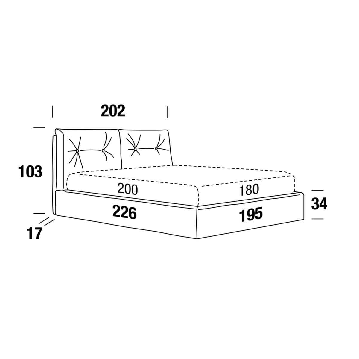 Letto Scotty B Ring Eko matrimoniale Felis è il letto di design che presenta due grandi cuscini in formato testiera. Il bordo a contrasto ha un impatto estetico inequivocabile e forte: delinea i bordi dei cuscini e della struttura del letto, ricreano un dettaglio stilistico e sartoriale brioso. Con il Relax System grazie all’innovativa soluzione dei cuscini reclinabili molte testiere sono relax system, consentono cioè una comoda posizione “seduta” e un pratico appoggio di sostegno per leggere, guardare la tv, lavorare al laptop. I bottoni possono essere in tinta con il tessuto di base, o a contrasto, dettaglio che renderà unico il letto Mentre i bottoni tendono alla tradizione, il cordoncino rende i cuscini più freschi e attuali. Divertendosi con i contrasti si possono creare giochi di luce che sottolineano la ricca imbottitura. I cuscini della testiera di Scotty si appoggiano al ring, restando dietro al materasso. RETI - per livellare alla stessa altezza reti diverse nello stesso letto MECCANISMI 1. DYNAMIC: meccanica ad alzata semplice collaudata e certificata fino a 5.000 cicli. Telaio in acciaio verniciato a polveri epossidiche e con molle a gas tarate al peso del materasso. CONTENITORE NEL RING
