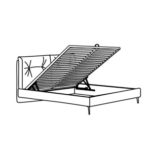 Il piano-rete si alza facilmente e senza sforzo grazie ai due meccanismi sicuri, brevettati E certificati. È facile e veloce e pratico sollevare il materasso e avere accesso ai capaci- contenitori. Il meccanismo tradizionale (A.), consente il sollevamento a 45°. Il secondo (B.), sempre servoassistito, consente sia il sollevamento a 45°, sia il successivo sollevamento di rete e materasso parallelamente al pavimento all'altezza di un metro punto in questo modo si avrà un accesso più diretto ai contenitori e si lavorerà più comodamente per rifare il letto, senza doversi abbassare.