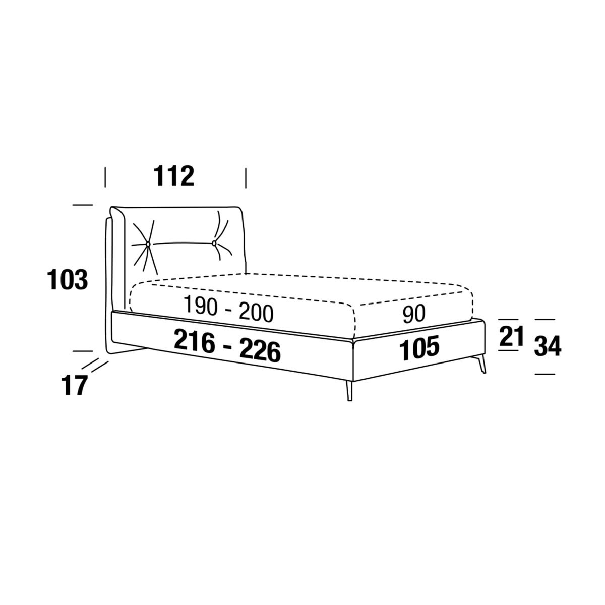 Letto Scotty B Ring Tokyo singolo Felis è il letto di design che presenta due grandi cuscini in formato testiera. Il bordo a contrasto ha un impatto estetico inequivocabile e forte: delinea i bordi dei cuscini e della struttura del letto, ricreano un dettaglio stilistico e sartoriale brioso. Con il Relax System grazie all’innovativa soluzione dei cuscini reclinabili molte testiere sono relax system, consentono cioè una comoda posizione “seduta” e un pratico appoggio di sostegno per leggere, guardare la tv, lavorare al laptop. Divertendosi con i contrasti si possono creare giochi di luce che sottolineano la ricca imbottitura. I cuscini della testiera di Scotty si appoggiano al ring, restando dietro al materasso. RETI - per livellare alla stessa altezza reti diverse nello stesso letto MECCANISMI 1. DYNAMIC: meccanica ad alzata semplice collaudata e certificata fino a 5.000 cicli. Telaio in acciaio verniciato a polveri epossidiche e con molle a gas tarate al peso del materasso. CONTENITORE NEL RING