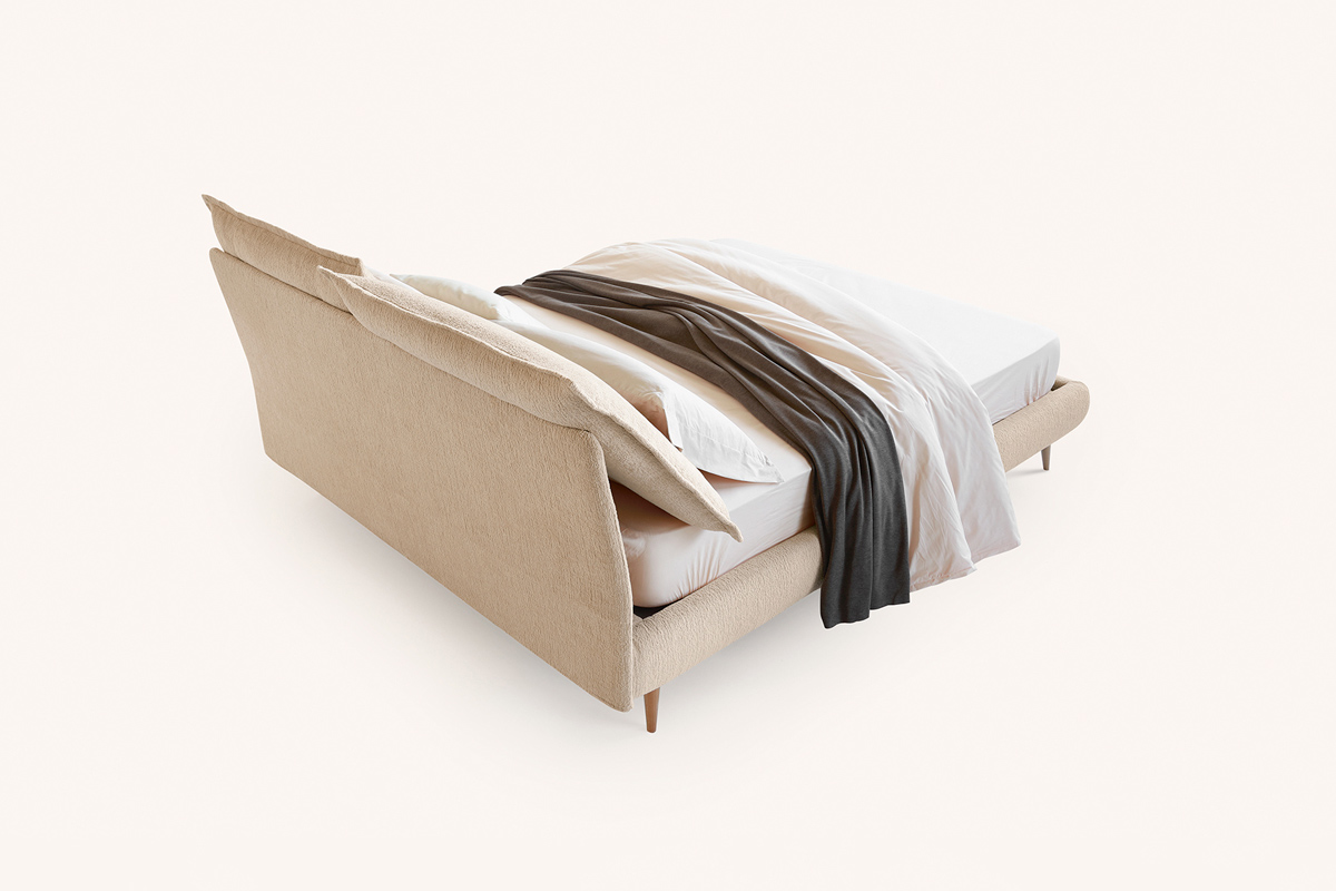 I cuscini della testiera sono dotati di movimento reclinabile. Progettati per offrire supporto al corpo in posizione di lettura, favoriscono una postura corretta ed ergonomica. Il movimento è favorito quando la testata è posizionata ad almeno 4 cm dalla parete retrostante. Il sistema è dotato di staffe regolabili che consentono anche l’utilizzo di materassi di grande altezza (max 32 cm), previo intervento in fase di installazione.