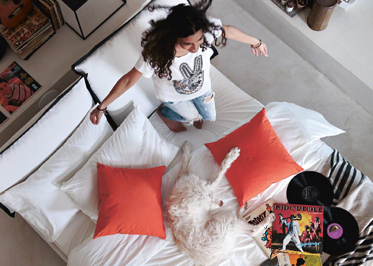 I cuscini della testiera sono dotati di movimento reclinabile. Progettati per offrire supporto al corpo in posizione di lettura, favoriscono una postura corretta ed ergonomica. Il movimento è favorito quando la testata è posizionata ad almeno 4 cm dalla parete retrostante. Il sistema è dotato di staffe regolabili che consentono anche l’utilizzo di materassi di grande altezza (max 32 cm), previo intervento in fase di installazione.