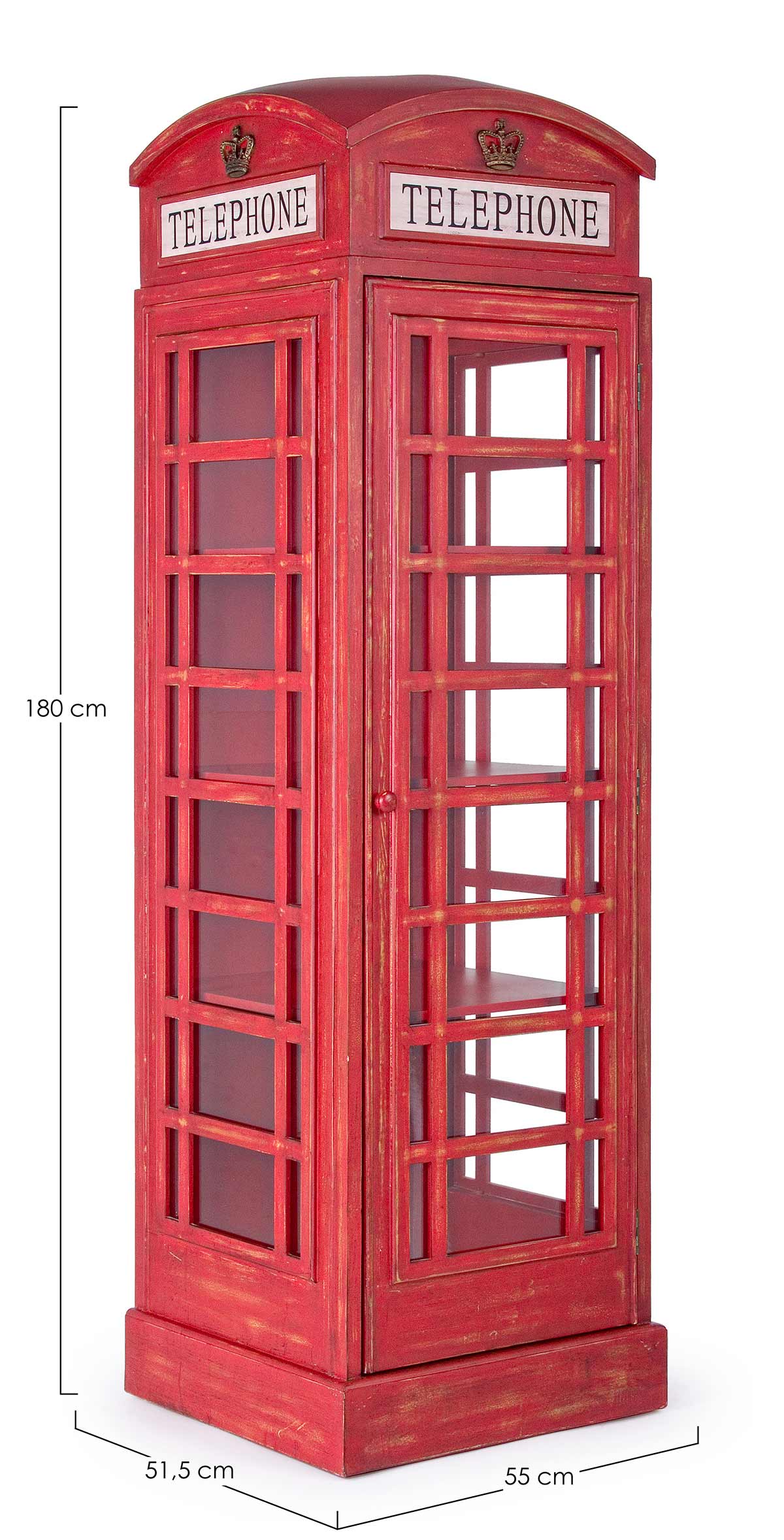 La Libreria Red Cabin by Bizzotto è una libreria di design con struttura in legno di abete, pannelli e piani in MDF e pomelli in legno. Finitura a base di nitrocellulosa. La peculiarità di questa libreria è senz'altro il suo mood spiccatamente metropolitano che riproduce il design della tipica cabina telefonica londinese, con tanto di ante su tre lati che consentono una visione completa del contenuto al suo interno. I pratici e spaziosi ripiani, infatti, consentono lo stipaggio di libri ed oggettistica varia da tenere sempre in bella vista ma al riparo dalla polvere.