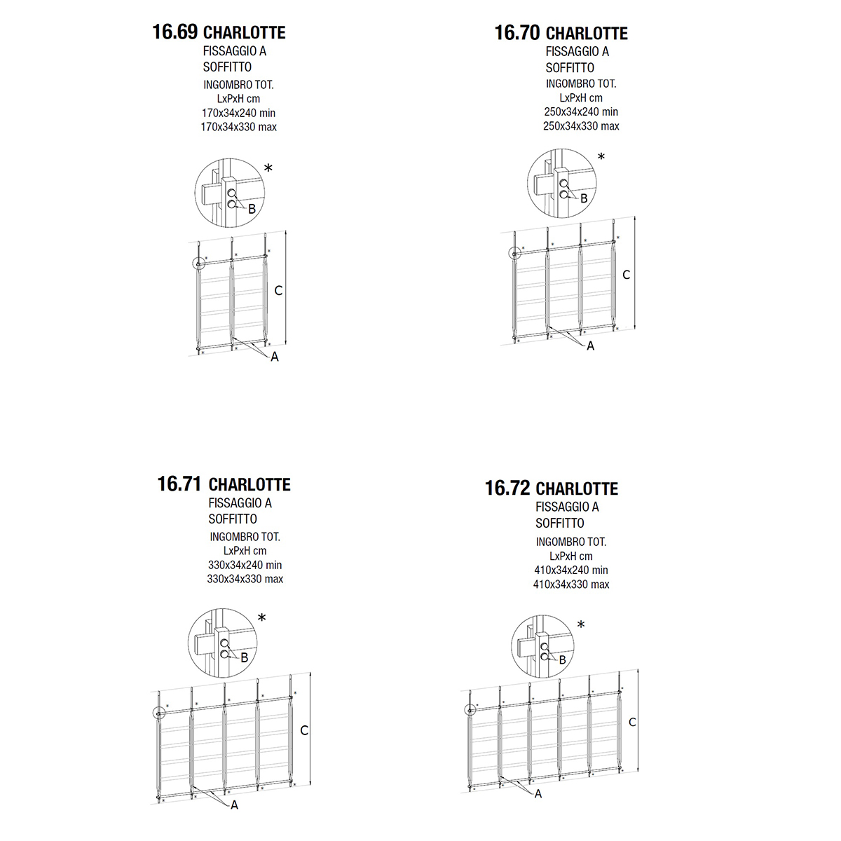 Altezza soffitto (C) | Indicare nel campo note dell'ordine un’altezza compresa tra 240 (min) e 330 (max) cm.