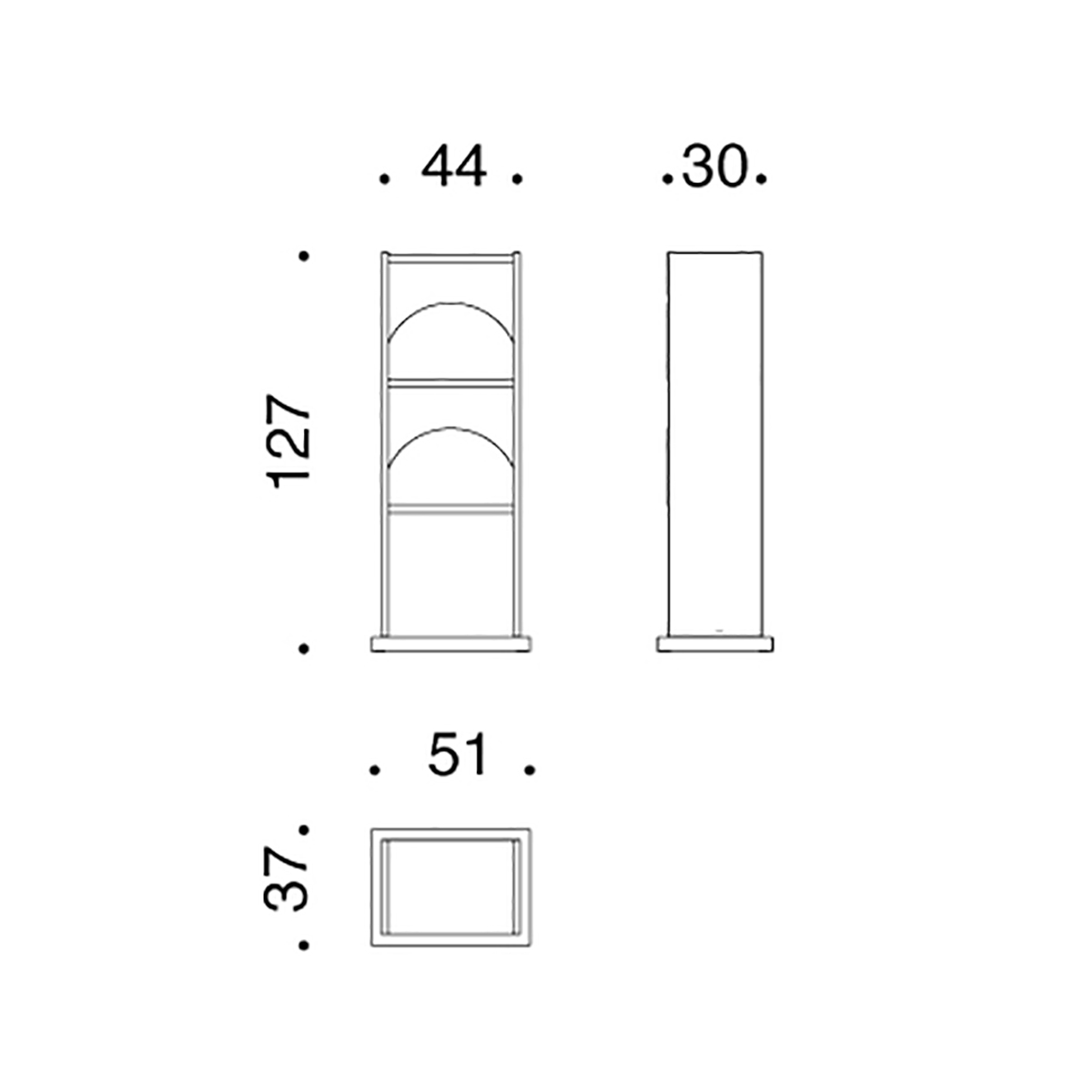 Floreana S Libreria Autoportante by Pierre Charpin per Danese Milano è una libreria di design appartenente al sistema di librerie verticali proposte in tre diverse altezze composte dalla ripetizione di un modulo. Realizzata in lamiera di metallo con dettaglio a forma di arco che si replica in altezza nei vari vani contenitore.