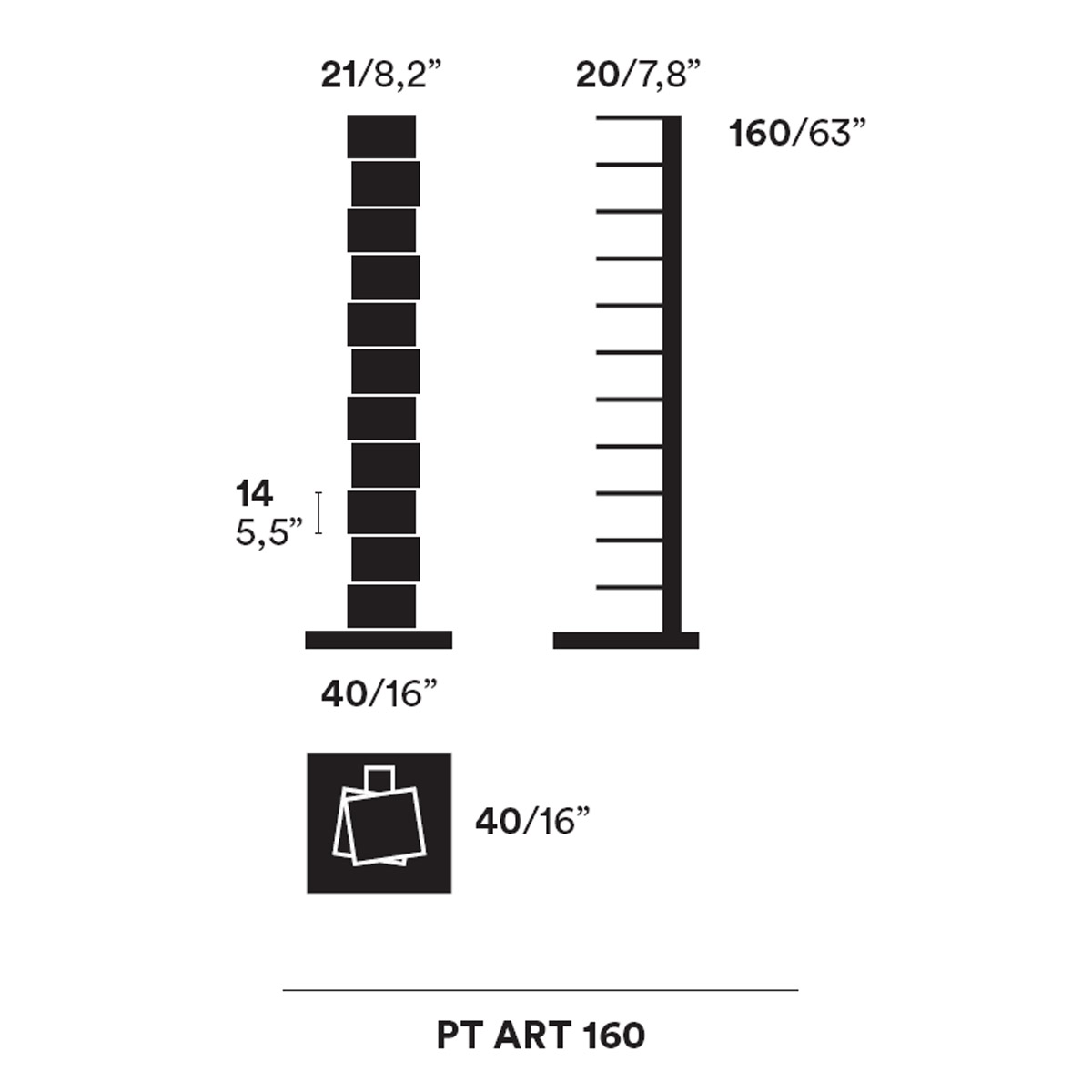 Ptolomeo Art H 160 Libreria Nero-Inox è la libreria di design verticale self standing in acciaio per riviste o libri di grande formato. Base incisa con la firma del designer. Piedini regolabili. Finiture: colonna e mensole laccate nero opaco, bianco RAL 9003 lucido o effetto corten opaco; acciaio inox lucido (interno mensole satinato). Base laccato nero opaco, bianco RAL 9003 lucido o effetto corten opaco; acciaio inox lucido. Ptolomeo Art è la versione XL della celebre libreria Original Ptolomeo ed è nata per contenere riviste, libri di grande formato, cataloghi o volumi d’arte. Ptolomeo Art riprende in tutto e per tutto le caratteristiche di Original Ptolomeo, anche questa libreria si presenta infatti come una colonna in acciaio a cui sono unite delle mensole anch’esse in acciaio. Ciò che rende però unica Ptolomeo Art sono le misure “aumentate” di mensole e base ricalibrate in modo da garantire stabilità alla struttura anche in situazioni di maggior peso. Con le sue forme semplici e lineari, ha un design puro e minimalista. Disponibile in due altezze si integra perfettamente in ogni ambiente: zona giorno o notte, in contesti classici o contemporanei, a casa come in ambienti contract. Divertiti a scoprire tutte le varianti di Ptolomeo Art, perché per il sapere non c'è limite!